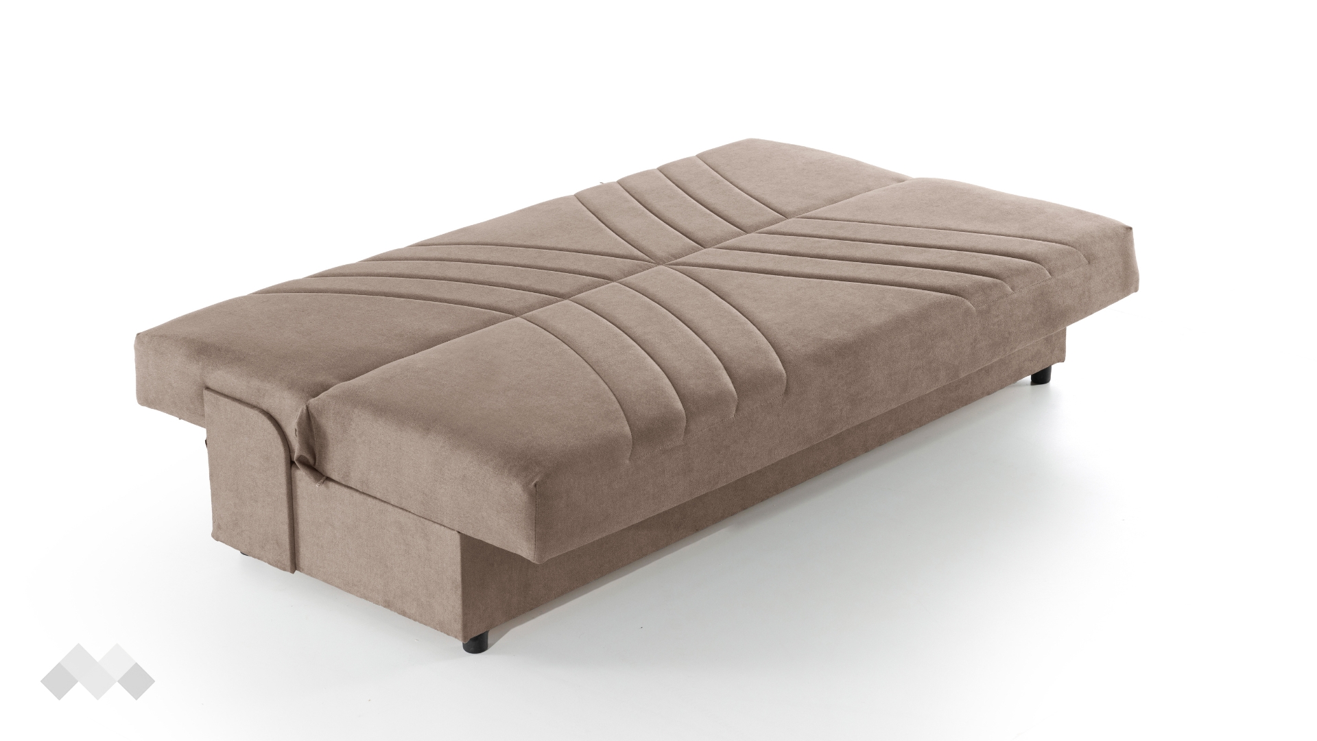 Подлакътниците са оформени с меки възглавници, които можеш лесно да премахнеш, когато имаш нужда от повече място. Така канапето бързо се адаптира според нуждите – независимо дали искаш да се изтегнеш с книга в ръка или да предложиш допълнително място за сядане. Под седалката се намира просторна ракла, идеална за съхранение на завивки, възглавници и други вещи, които искаш да държиш подръка, но скрити от погледа.