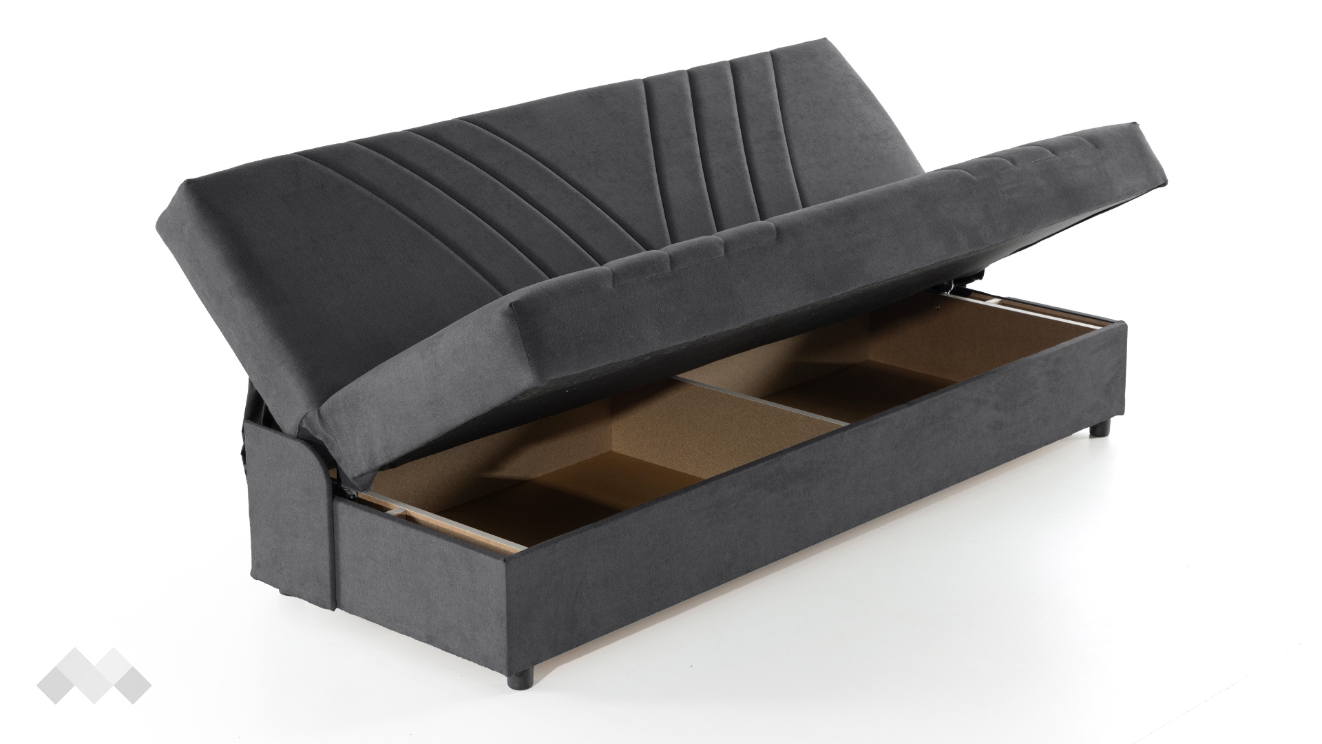 Подлакътниците са оформени с меки възглавници, които можеш лесно да премахнеш, когато имаш нужда от повече място. Така канапето бързо се адаптира според нуждите – независимо дали искаш да се изтегнеш с книга в ръка или да предложиш допълнително място за сядане. Под седалката се намира просторна ракла, идеална за съхранение на завивки, възглавници и други вещи, които искаш да държиш подръка, но скрити от погледа.