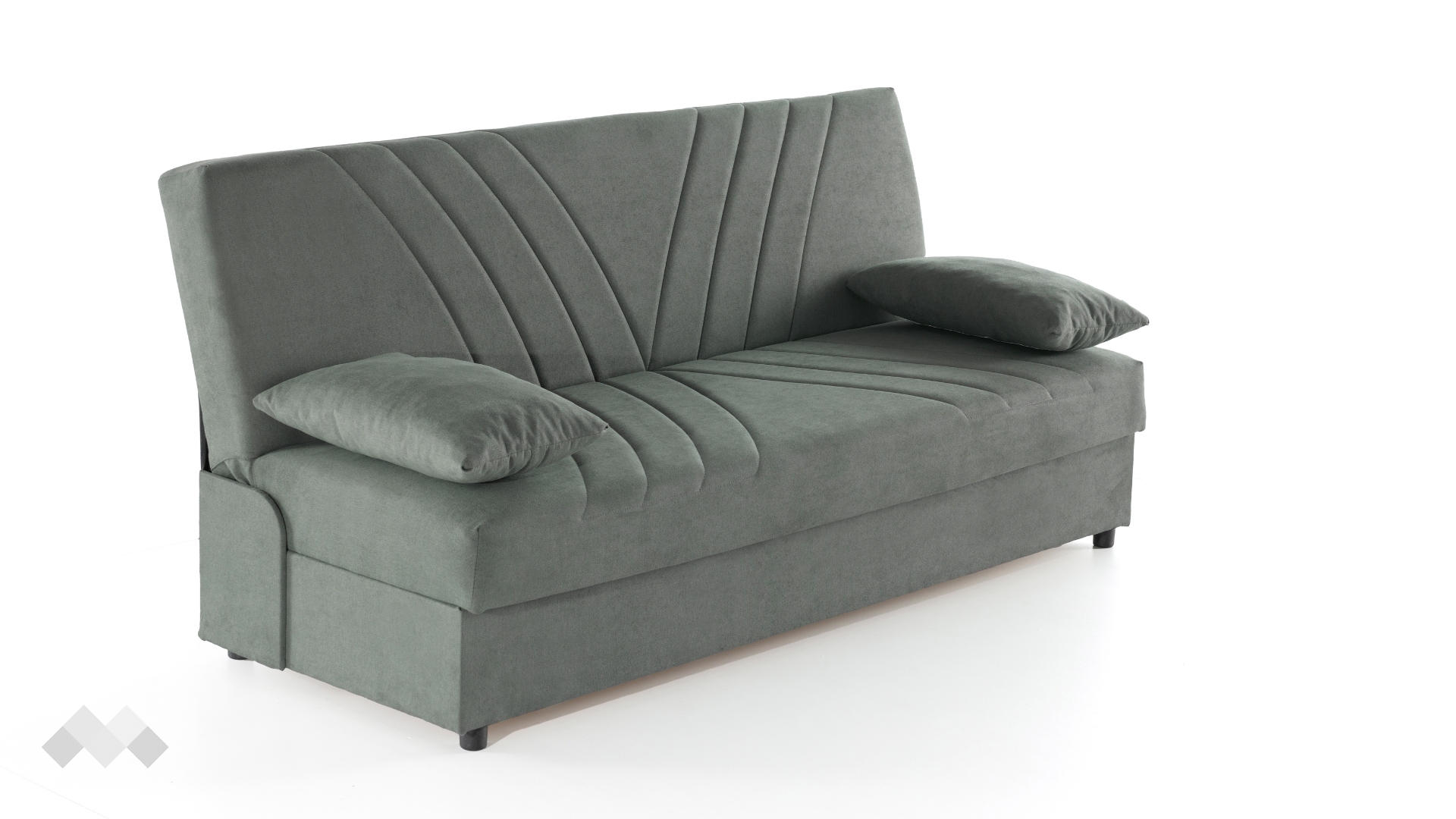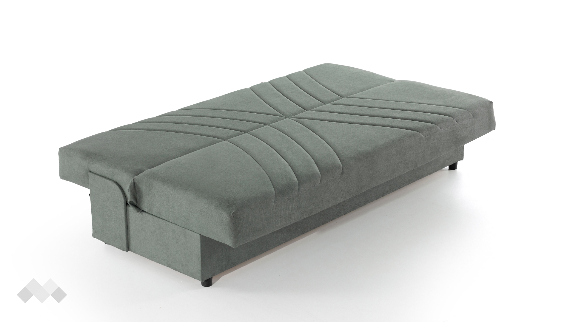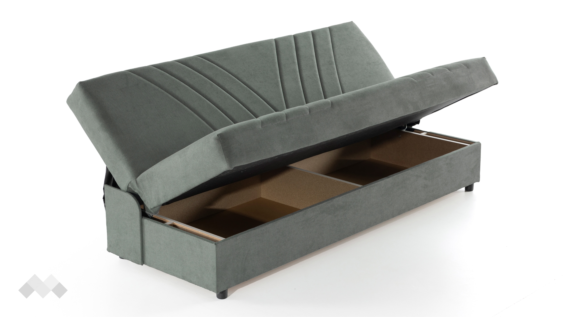 Подлакътниците са оформени с меки възглавници, които можеш лесно да премахнеш, когато имаш нужда от повече място. Така канапето бързо се адаптира според нуждите – независимо дали искаш да се изтегнеш с книга в ръка или да предложиш допълнително място за сядане. Под седалката се намира просторна ракла, идеална за съхранение на завивки, възглавници и други вещи, които искаш да държиш подръка, но скрити от погледа.