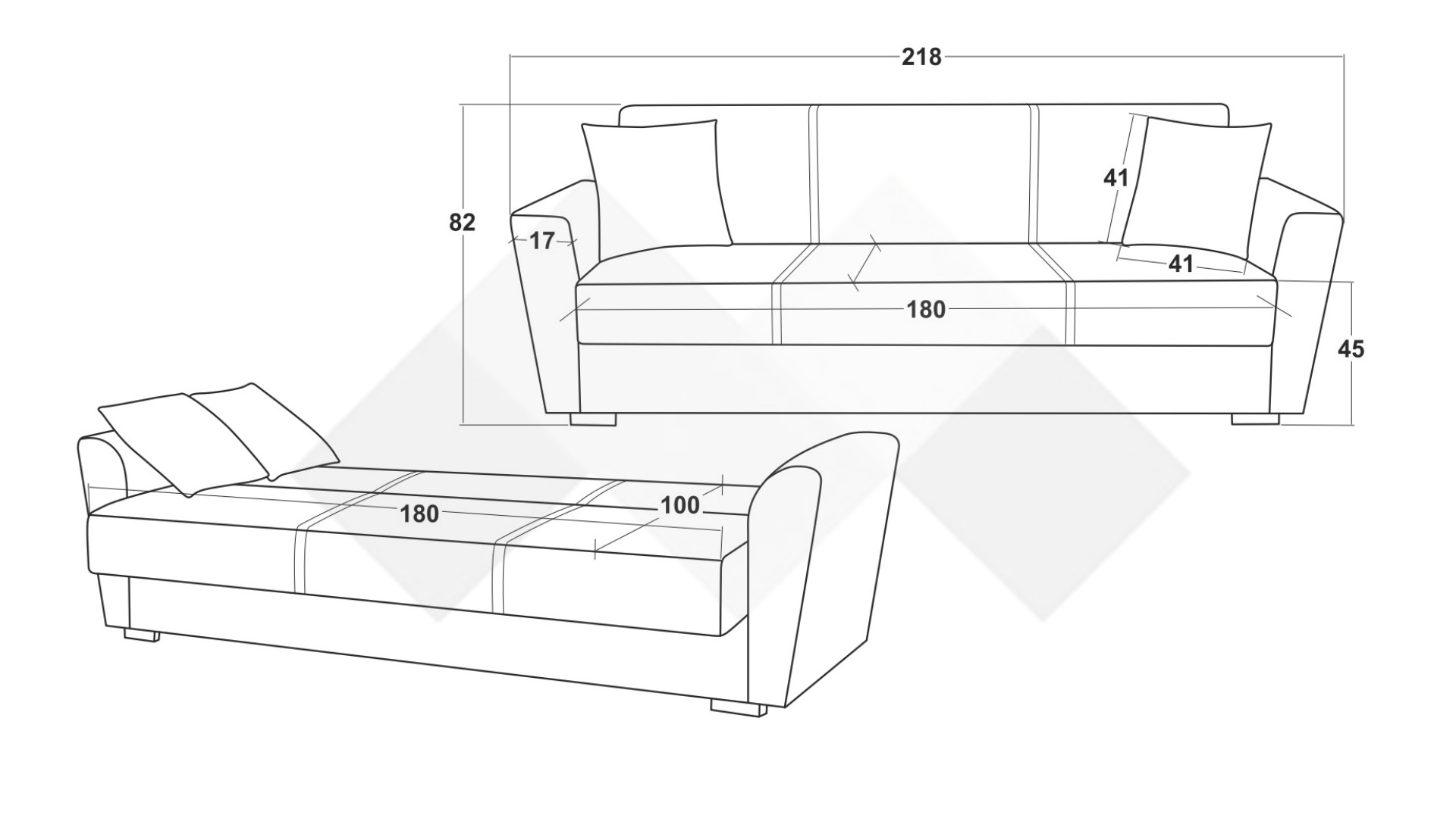 С едно лесно движение диванът се превръща в удобно легло, благодарение на надеждния клик-клак механизъм. Площта за сън е подходяща за кратка почивка или дълъг сън, а комфортът се подсигурява от вложения пружинен пакет Бонел, който осигурява мекота и добро разпределение на тежестта.