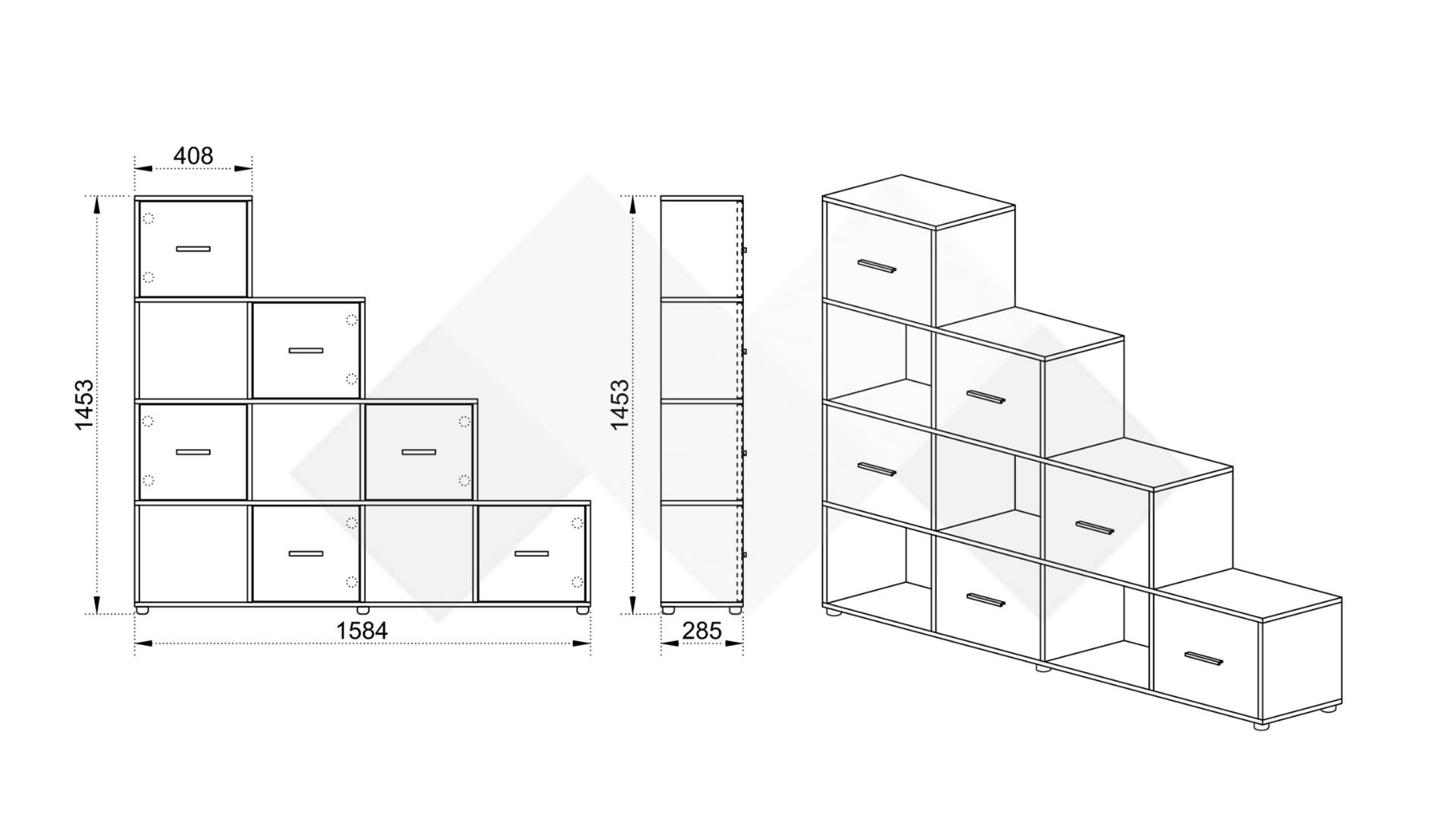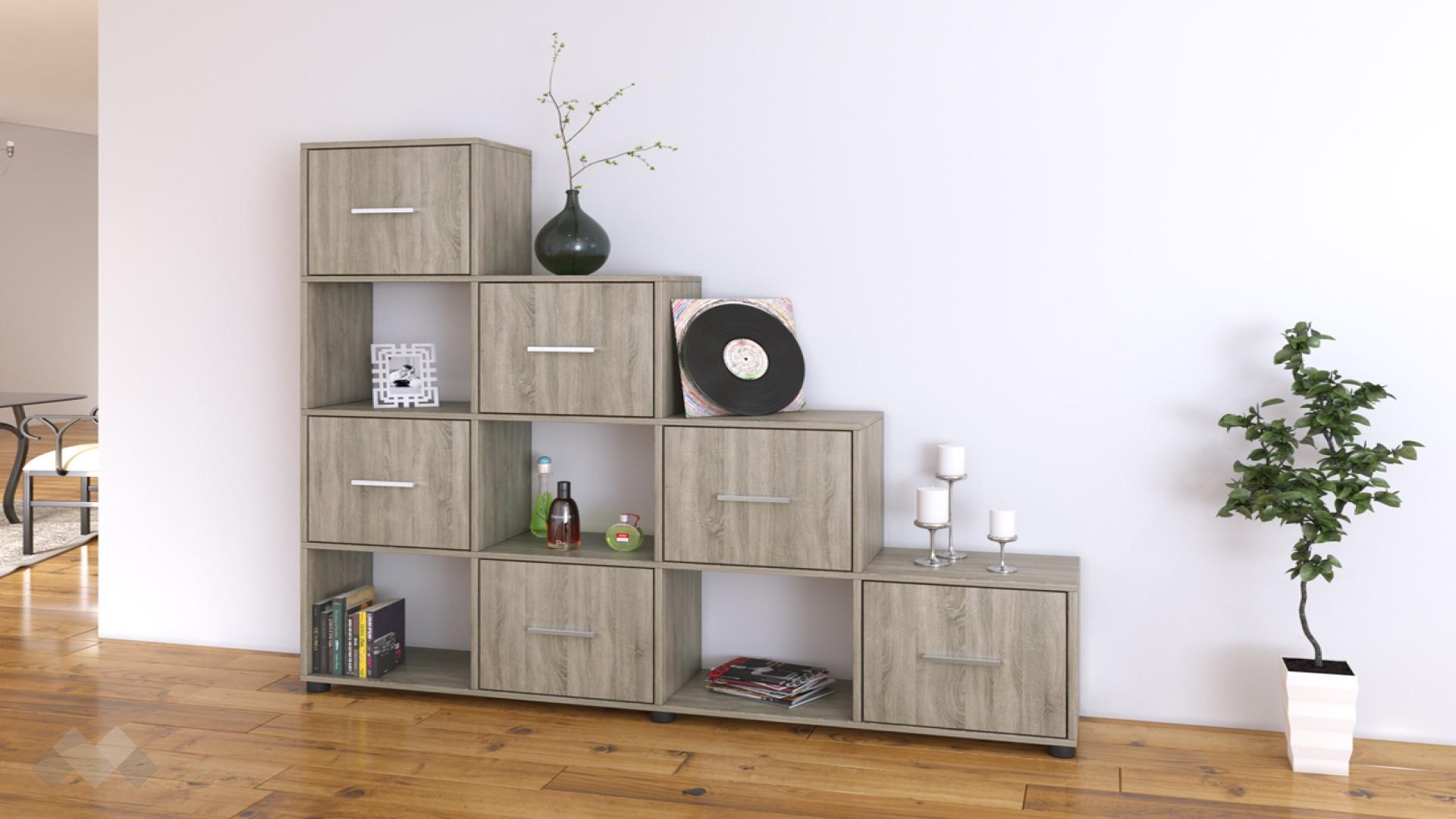 Обичаш ли закачливите елементи в дизайна? Етажерка Фресно е разчупена, интересна и привличаща погледа. Шахматното разположение на открити и закрити пространства позволява ефектна аранжировка с любимите ти сувенири, стайни растения и картини.