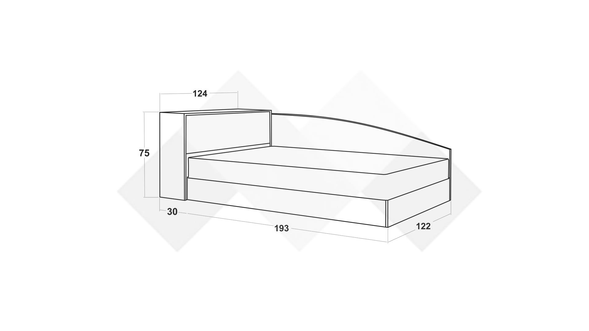 Легло: Д: 193 см Ш: 122 см Ракла: Д: 124 см Ш: 30 см В: 75 см