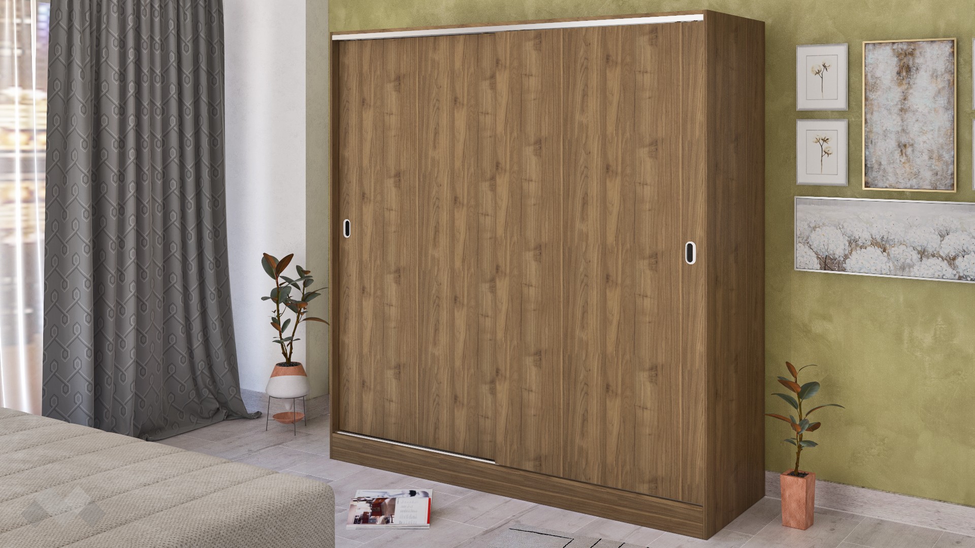 Гардероб Глендейл е перфектният избор за почитателите на практичните мебели със семпъл и изчистен дизайн. Той е двукрилен гардероб с плъзгащи врати и външен механизъм. Модерният плъзгащ механизъм прави отварянето на вратите леко и приятно, без да е необходимо допълнително пространство пред тях. Щом ги отвориш, вътре ще откриеш четири големи рафта с оптимална височина и просторно крило за закачалки.