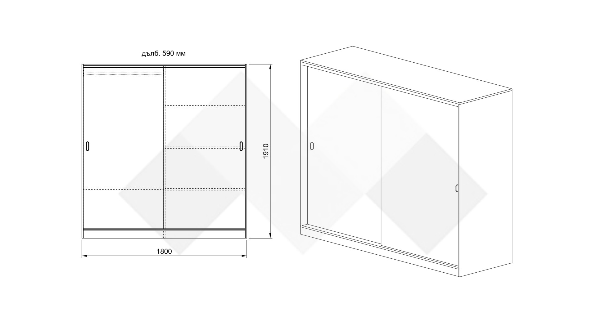 ⭐ Предимства: ✓ плъзгащи врати ✓ 4 рафта ✓ лост за закачалки ✓ модерен декор ✓ практично разпределение ✓ качествена изработка ✓ 16 мм ПДЧ