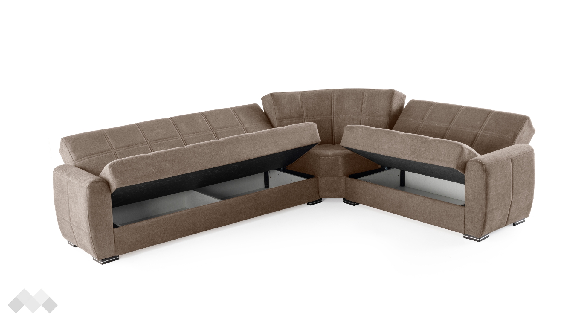 Моделът разполага сотделни зони за сън – една основна и една допълнителна, което го прави изключително подходящ за домакинства, които често посрещат гости или разчитат на дивана за редовно спане. Трансформацията в легло става бързо и лесно чрез удобен клик-клак механизъм, а под седалките се крият две практични ракли за съхранение на спално бельо, одеяла или други вещи.
