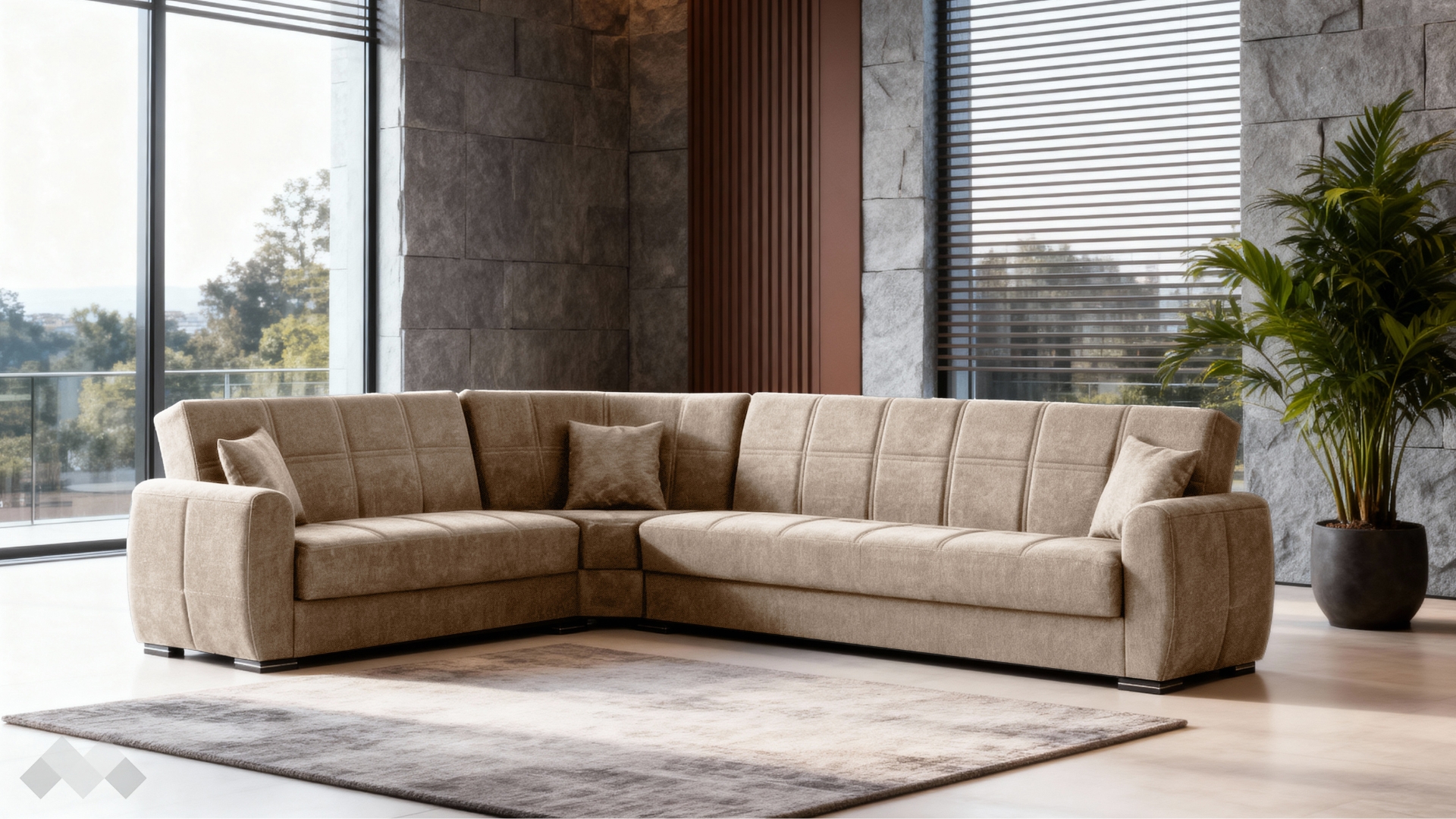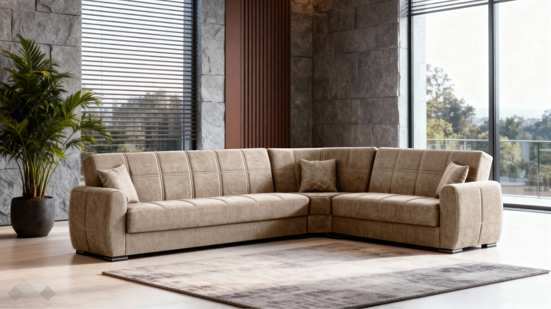 Изработен от здрави и устойчиви на износване материали, ъгловият диван Гранд е създаден да издържи на интензивно ежедневно ползване, като същевременно запази своя стил и удобство във времето.