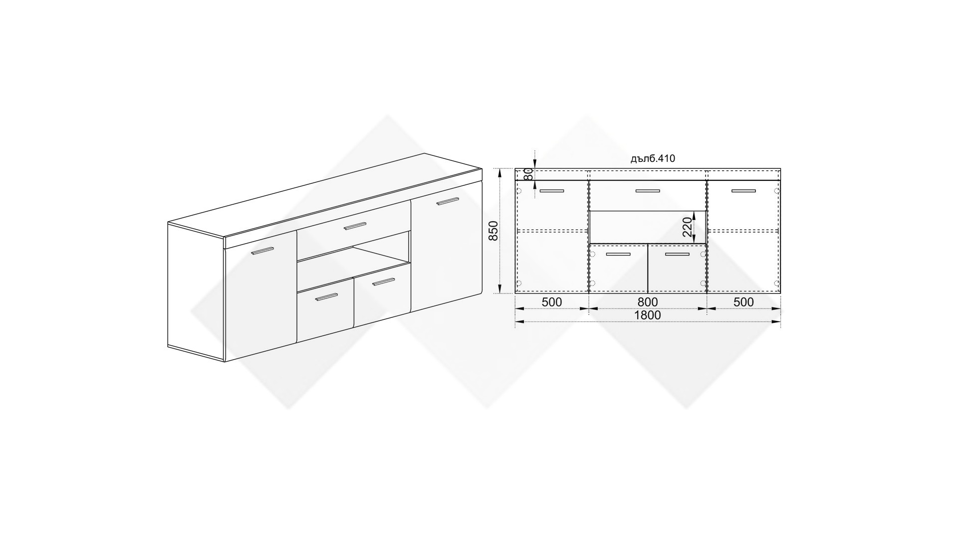 ✓ чекмедже ✓ 4 затворени шкафа ✓ отворен рафт ✓ компактен и практичен ✓ механизъм за плавно затваряне ✓ модерен декор ✓ качествена изработка ✓ 16 мм ПДЧ и 18 мм МДФ