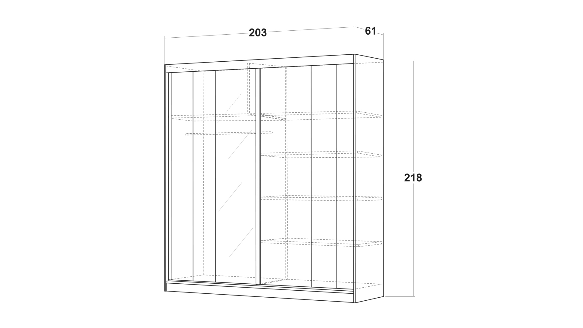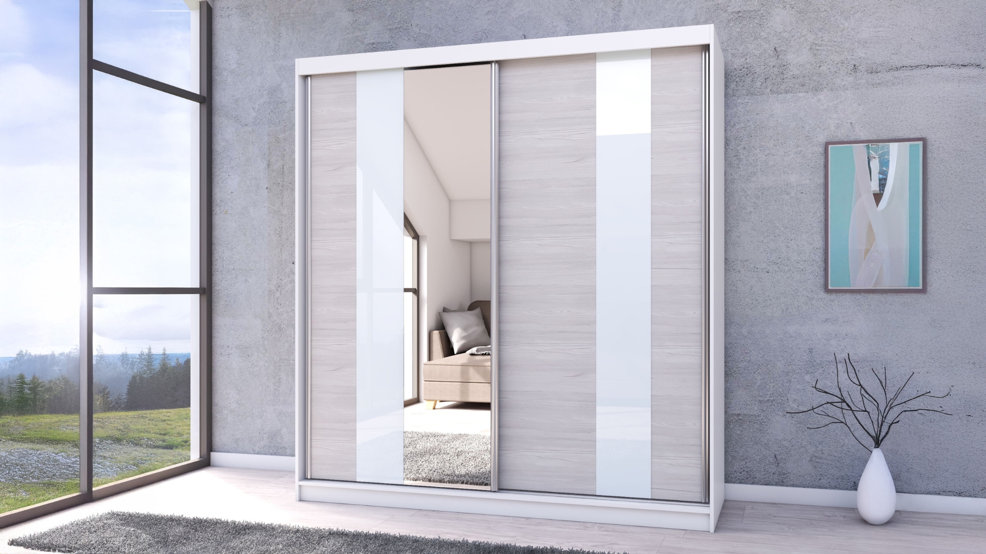 Гардеробът Хелиос е елегантно и функционално решение, подходящо както за компактни помещения, така и за модерни интериори с изчистена визия. Плъзгащите врати с огледало създават усещане за простор, като същевременно пестят място и добавят удобство в ежедневната употреба.