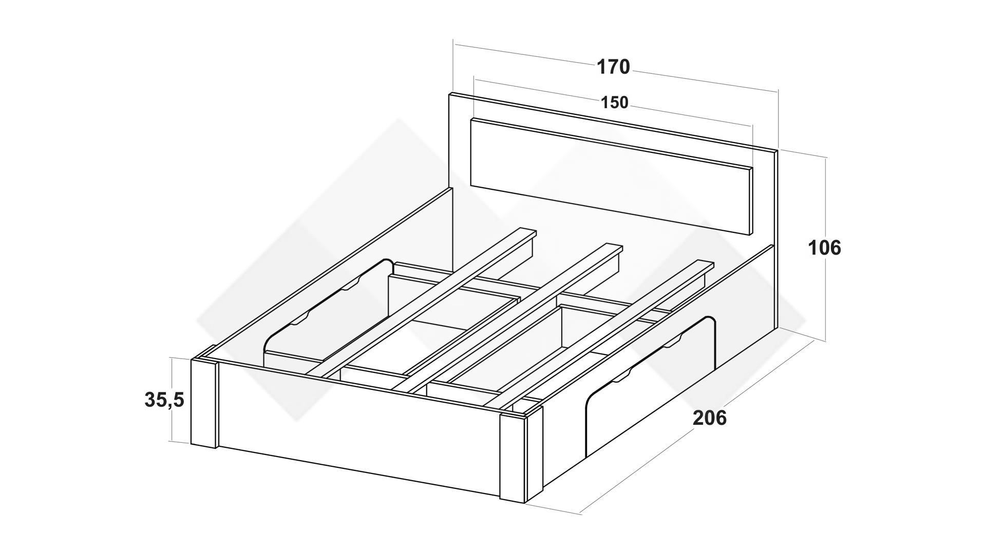 ⭐ Предимства: ✓ стабилна и здрава конструкция ✓ качествена изработка ✓ 16 мм ПДЧ ✓ с две чекмеджета ✓ за матрак 160/200 ✓ включено LED осветление на таблата ✓ модерен дизайн