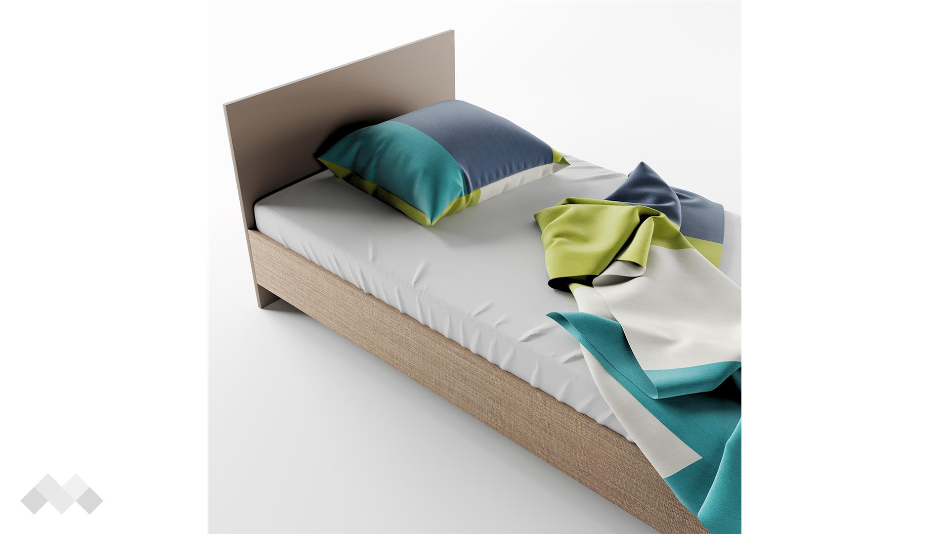 Корпусът на леглото е изпълнен от 16мм ЛПДЧ с меламиново покритие, устойчиво на надраскване и износване, благодарение на което мебелите ще запазят задълго безупречния си вид, а почистването им е лесно и бързо.