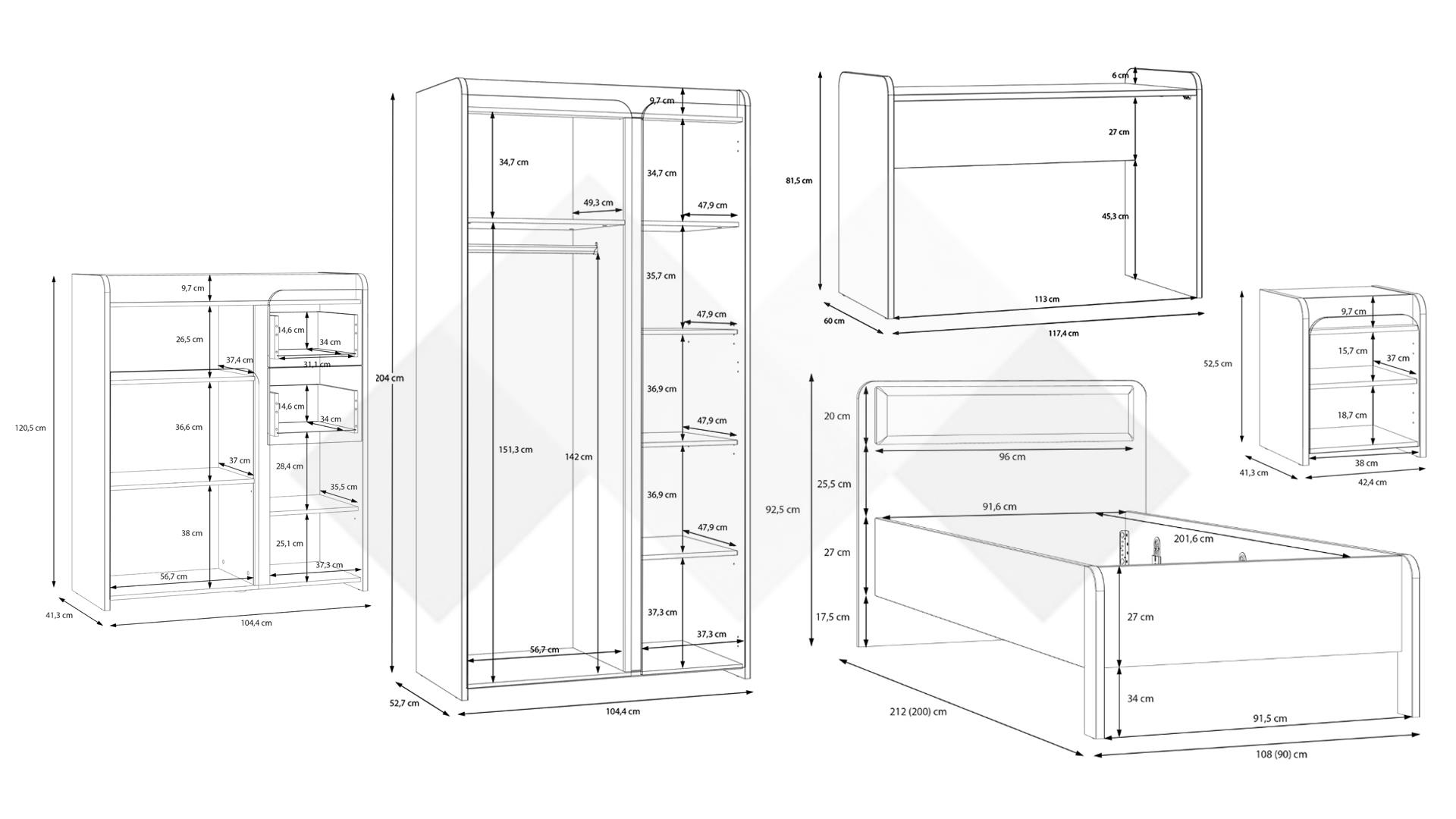 ✓ модерен дизайн ✓ здрава конструкция ✓ двукрилен гардероб ✓ бюро ✓ нощен шкаф ✓ скрин ✓ практично решение ✓ качествена изработка ✓ за матрак 90/200