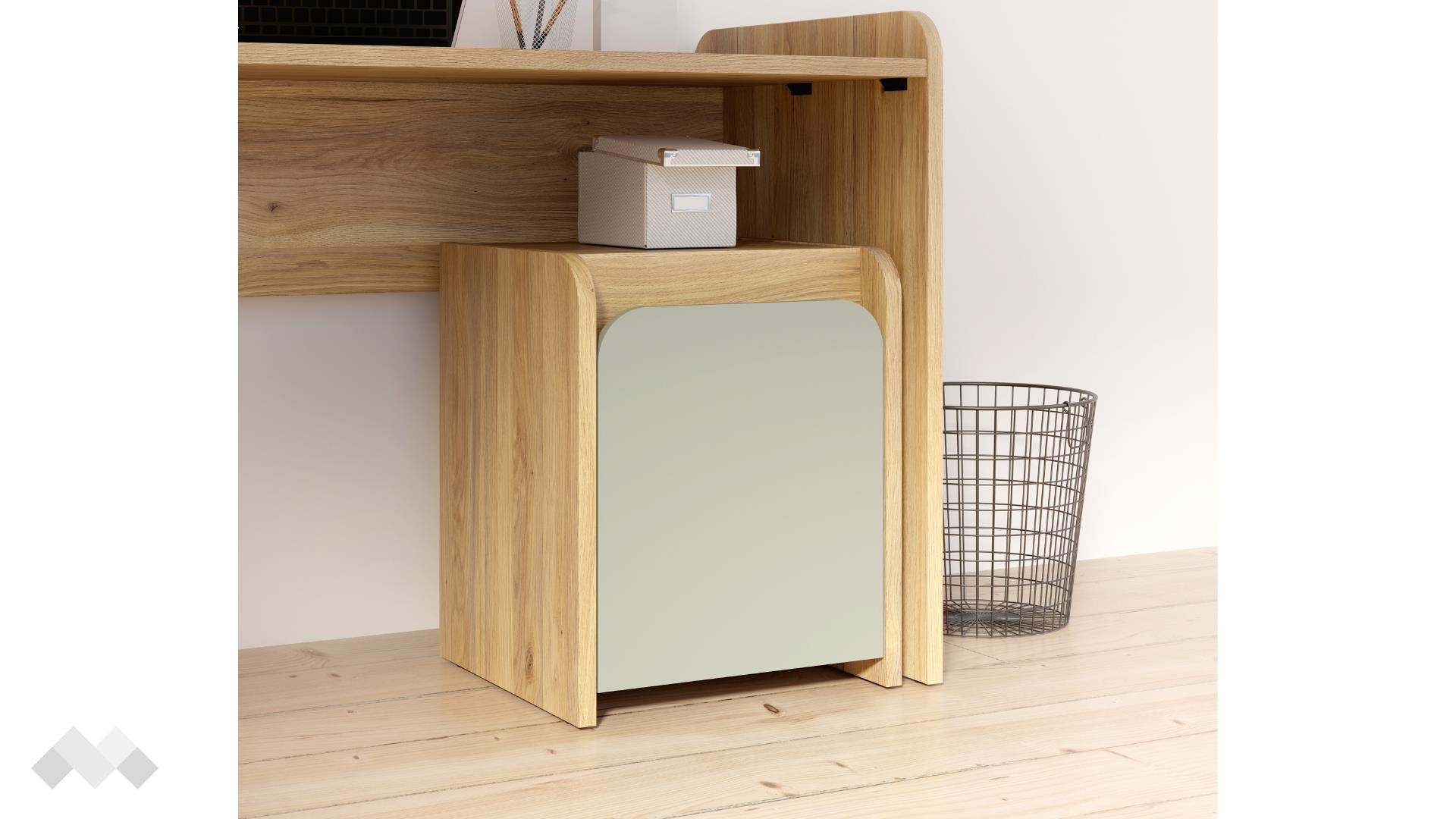 Нощното шкафче е практично и елегантно допълнение към всяка спалня. Съчетавайки изчистена визия и функционалност, то предлага удобно място за най-необходимите вещи до леглото – книга, телефон, очила или нощна лампа. Отвореният рафт осигурява лесен достъп и позволява бързо организиране на предметите, които искаш да са винаги подръка. Допълнително, шкафчето разполага с врата, зад която има още един рафт – практично решение за подредба на по-дребни вещи, които предпочиташ да не са на показ.