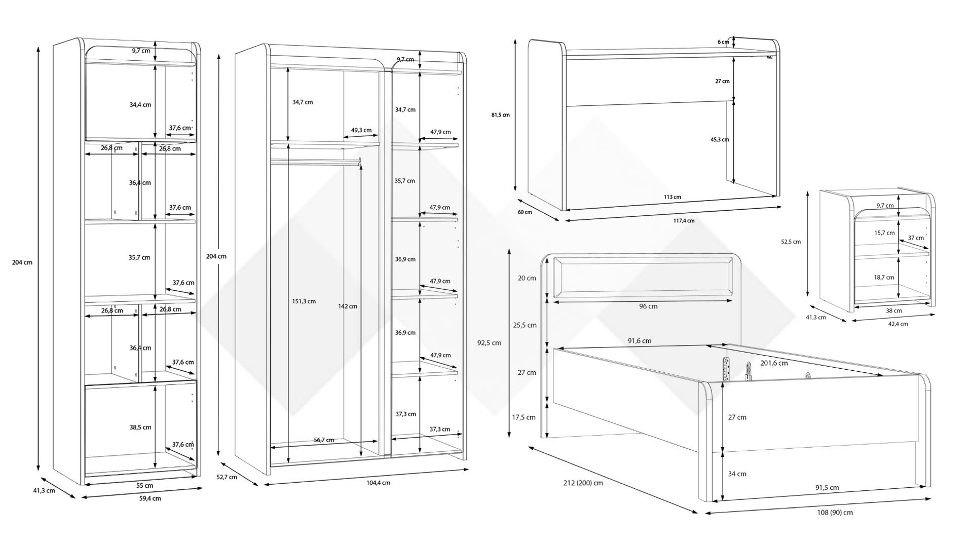 ✓ модерен дизайн ✓ здрава конструкция ✓ двукрилен гардероб ✓ бюро ✓ нощен шкаф ✓ висок шкаф ✓ практично решение ✓ качествена изработка ✓ за матрак 90/200