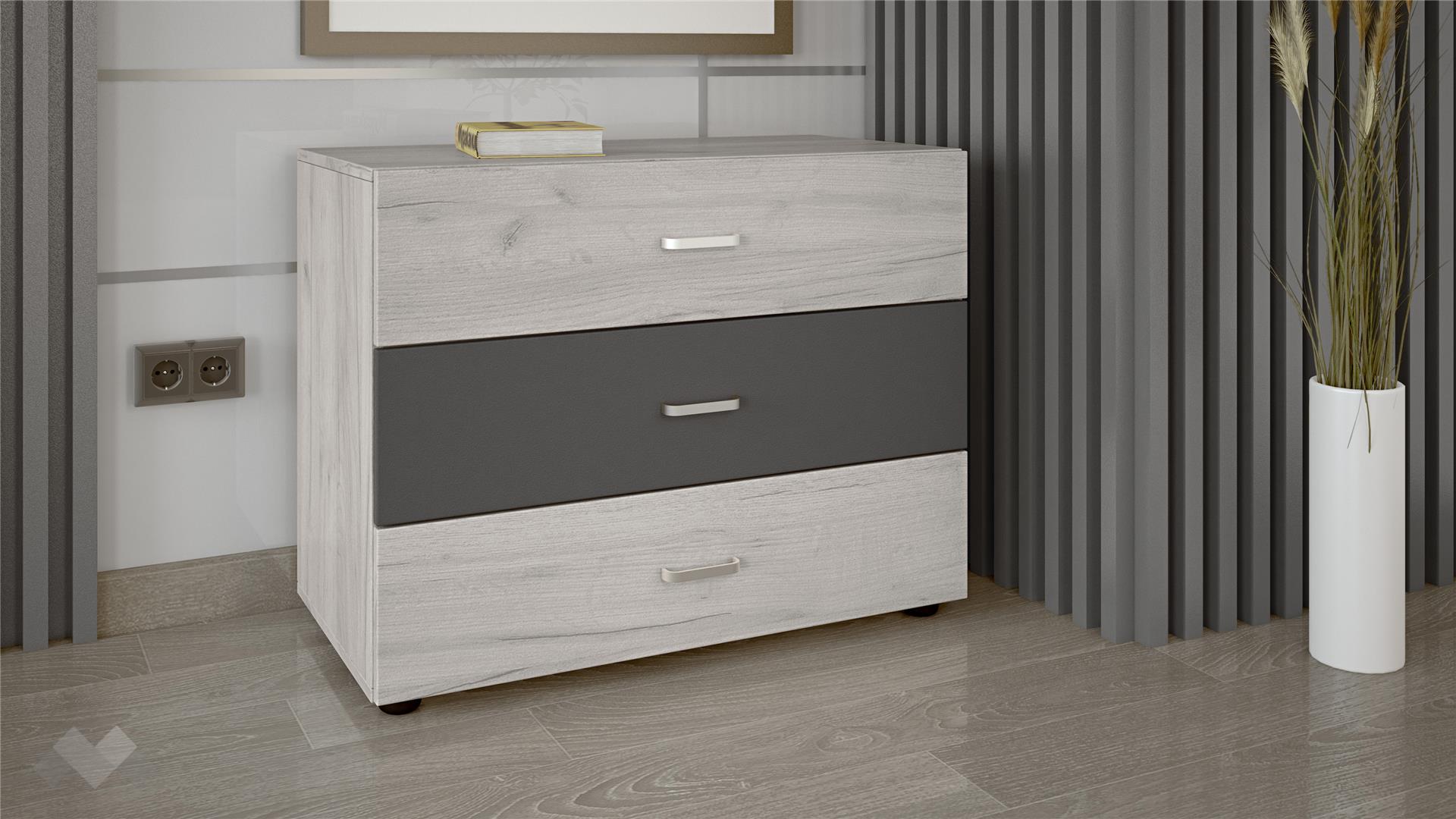 За да организираш дребните вещи, ще ти помогнескринът с три чекмеджета. Плотът за скрина можеш да използваш за подреждане на спомени и сувенири, които ще придадат допълнителен уют в стаята.