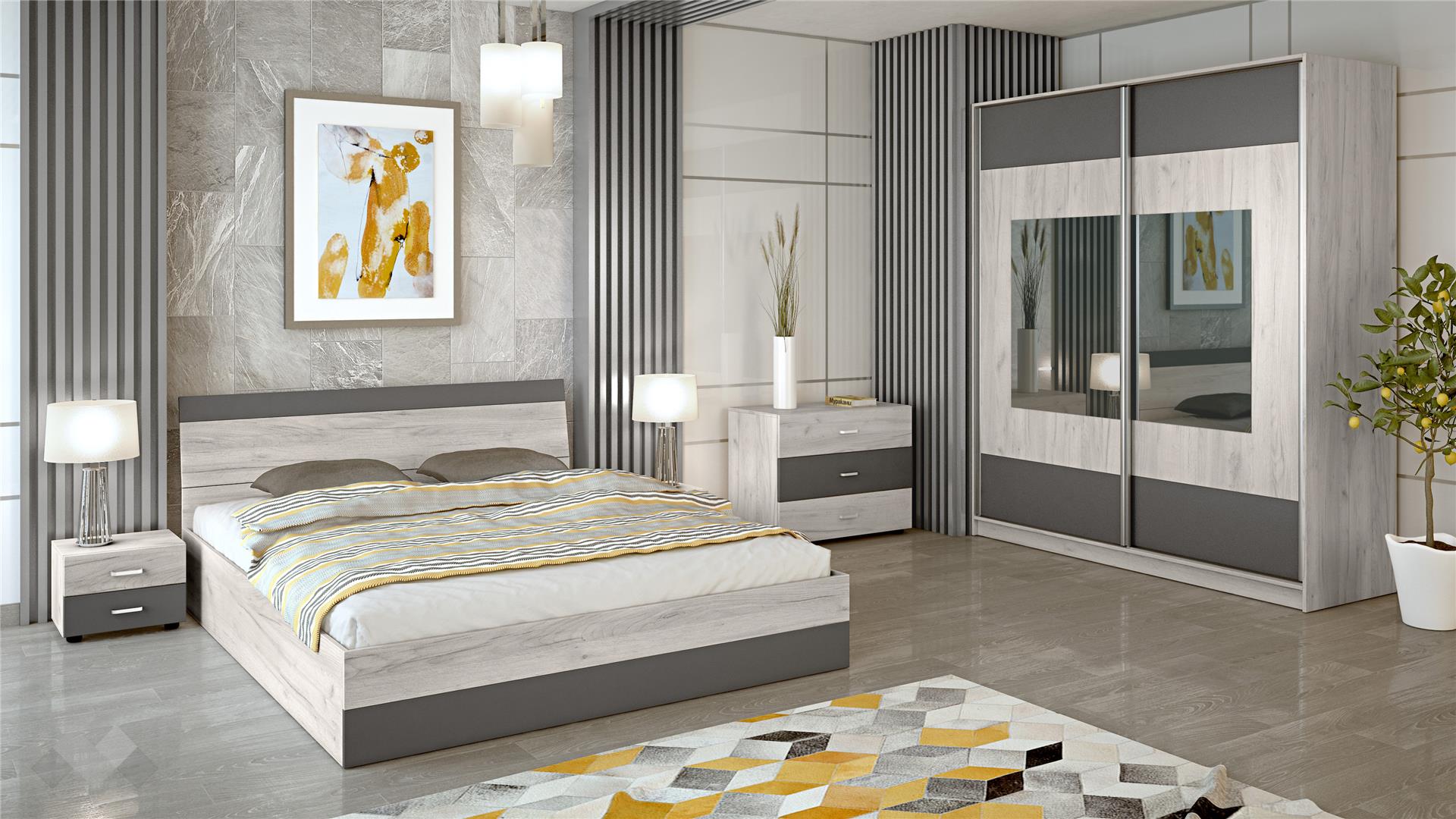 Спален комплектИбизасеверен дъб с антрацит