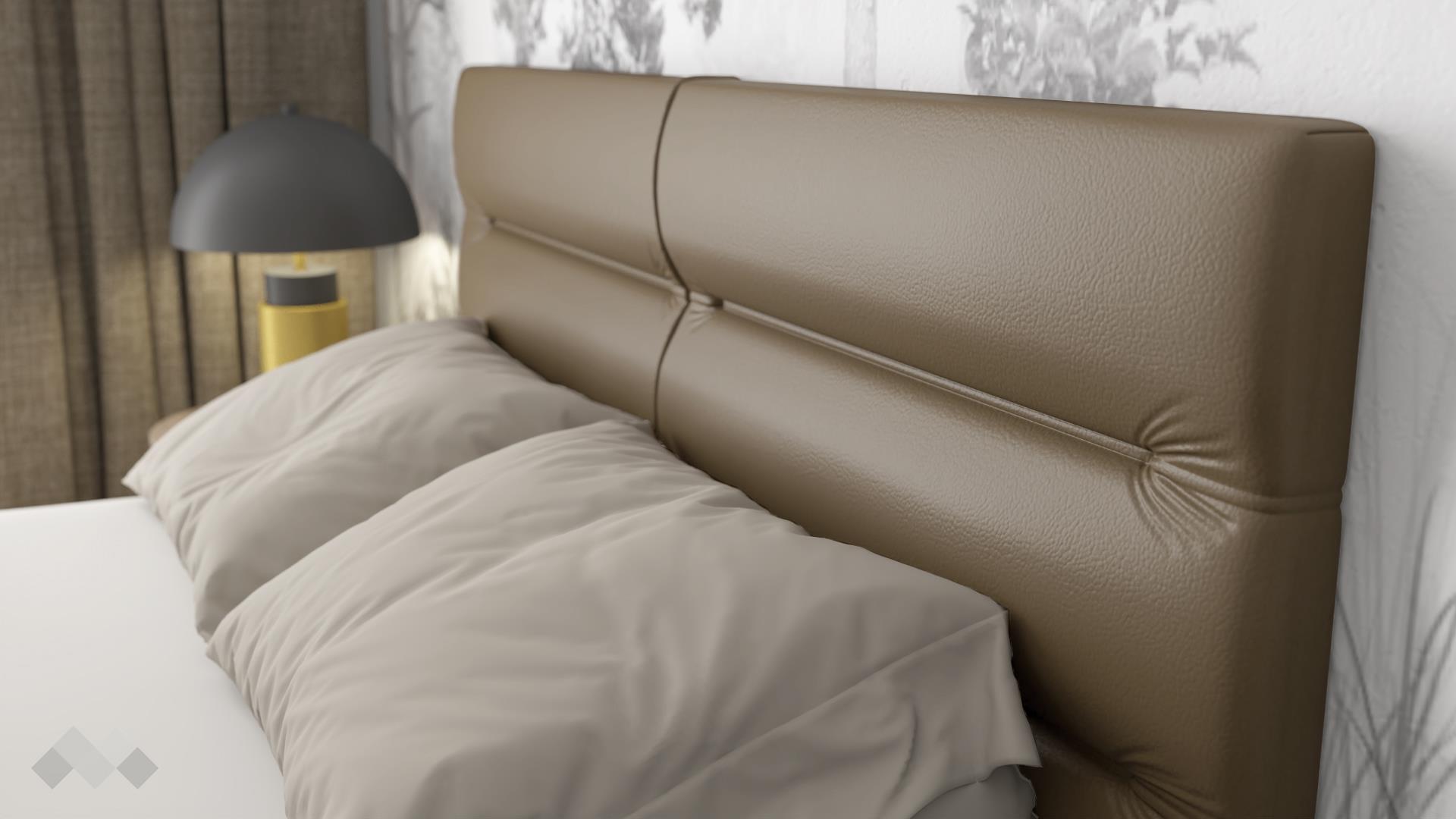 Тапицирана спалня Ивалина е подходяща за матрак с размер 160/200 см – достатъчно широка, за да ти осигури необходимото пространство за спокоен и комфортен сън. Таблата е с оптимална височина, мека и удобна за облягане при четене на книга или гледане на телевизия. Благодарение на включения повдигащ механизъм, в пространството под матрака можеш да съхраняваш завивки, възглавници, спално бельо или дрехи. Това е безценно предимство при по-малките жилища, където всеки сантиметър е от значение.