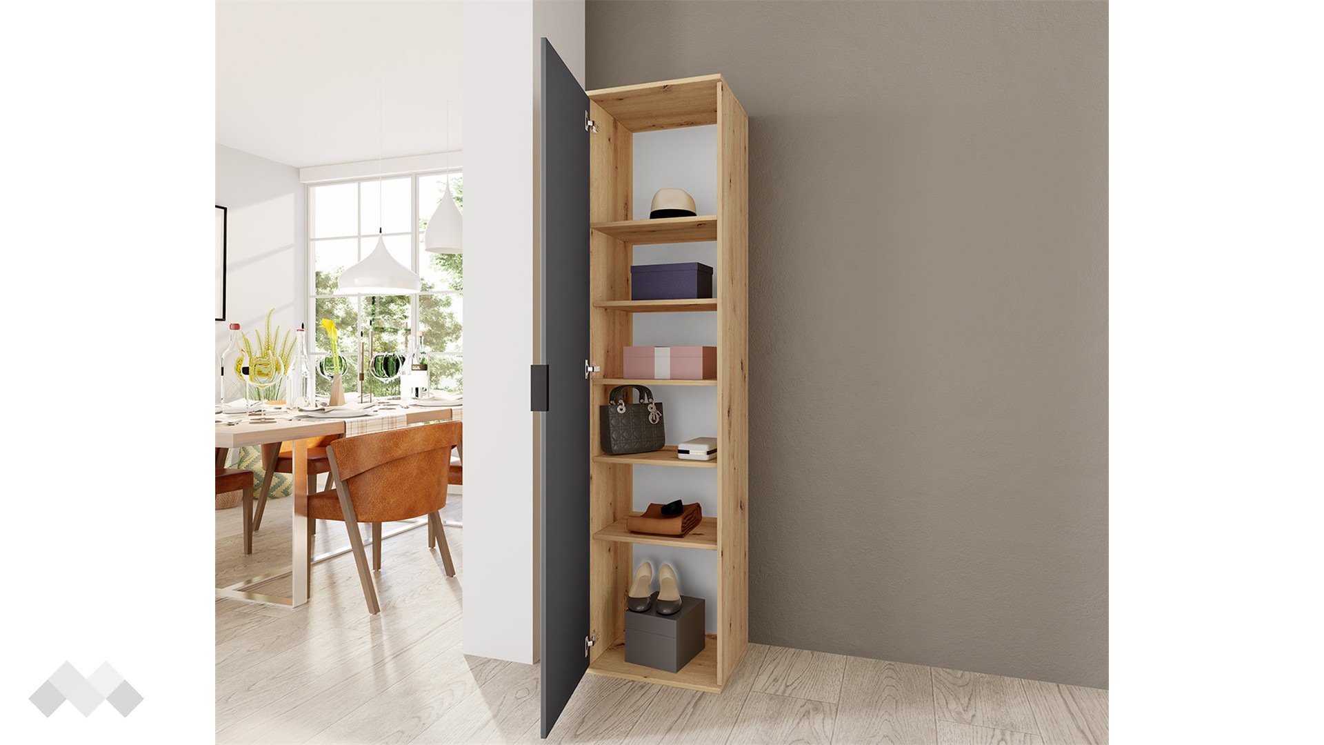 Той е с разпределение от 5 рафта, което ще ти осигури необходимото пространство за съхранение на вещите, които не използваш всеки ден, но искаш да са лесно достъпни.