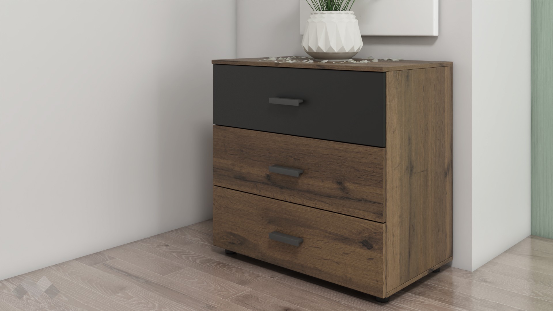⭐ Предимства: ✓ 3 чекмеджета ✓ компактен и практичен ✓ модерен винтидж декор с WNR структур ✓ качествена изработка ✓ 16 мм ПДЧ