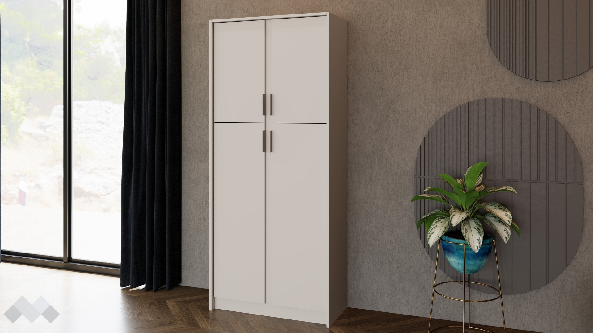 Шкафът разполага с четири вратички, зад които се крие практично вътрешно пространство с четири рафта за по-лесно подреждане. Той е перфектното решение за организиране на всякакви документи, папки, книги и офис консумативи. Благодарение на четирите вътрешни рафта можеш лесно да разделиш вещите си и да поддържаш реда, като всяко нещо има своето място.