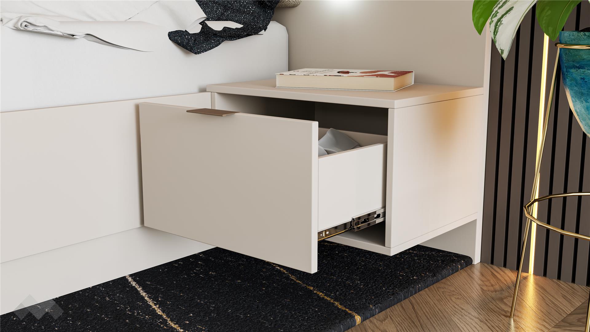 Двете нощни шкафчета разполагат с телескопични водачи за по-голяма устойчивост. Те осигуряват допълнително удобство, като всяко от тях разполага с чекмедже за съхранение на най-необходимите вещи, които да бъдат винаги под ръка.