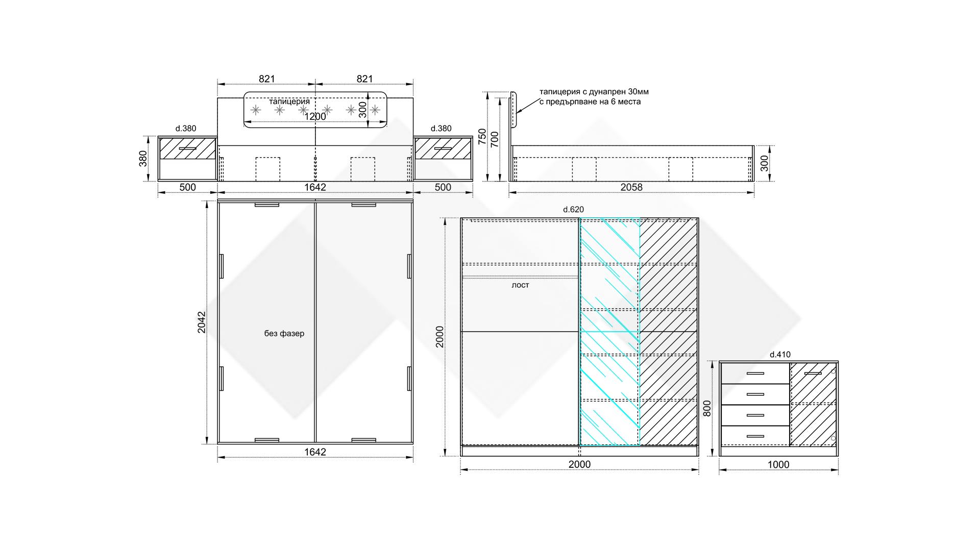 Спалня: Д: 205.8 см Ш: 164.2 см В: 75 см
