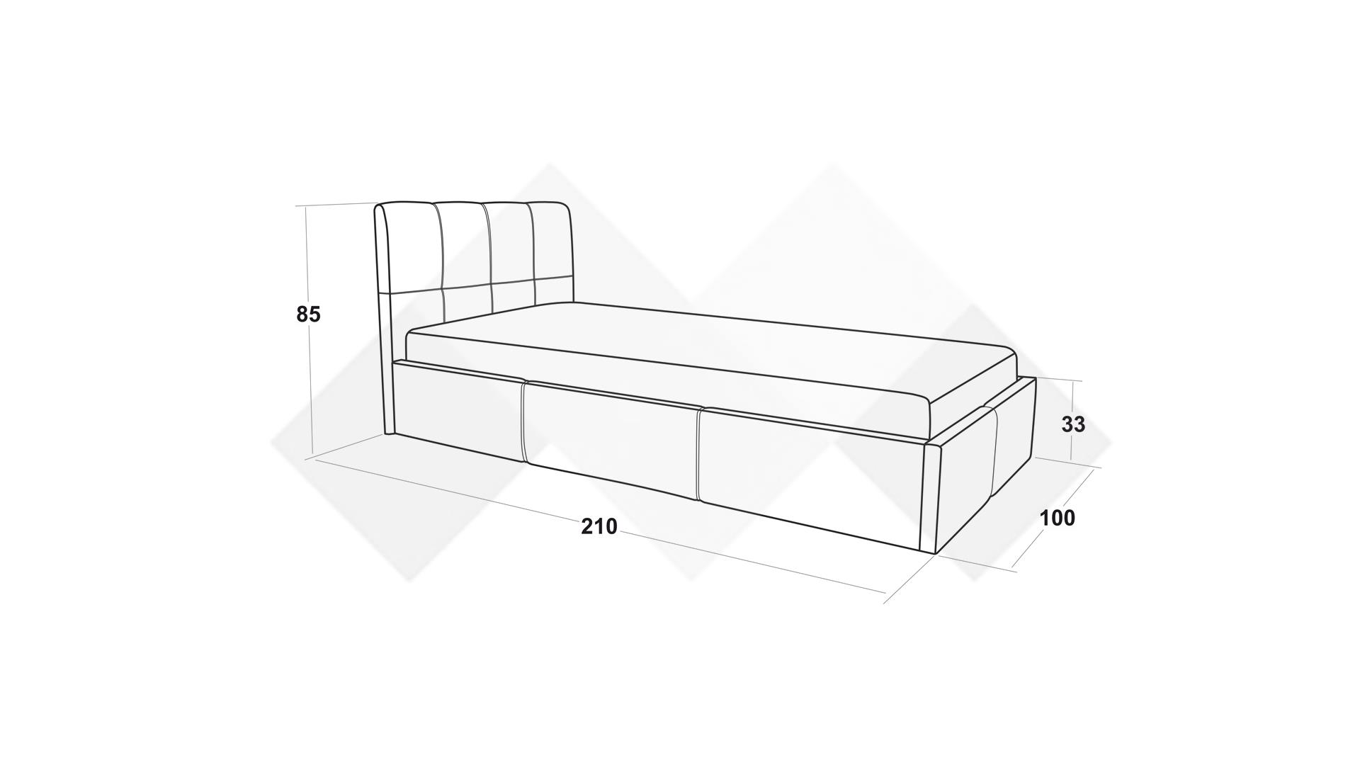 Леглото е с меки форми и елегантен дизайн. Подходящо е за матрак 90/200 см. Под матрака се открива широко пространство, готово да побере всички възглавници и завивки, на които все не намираш място. Така не се налага да закупуваш допълнителни шкафове у дома и пестиш пространство и пари.