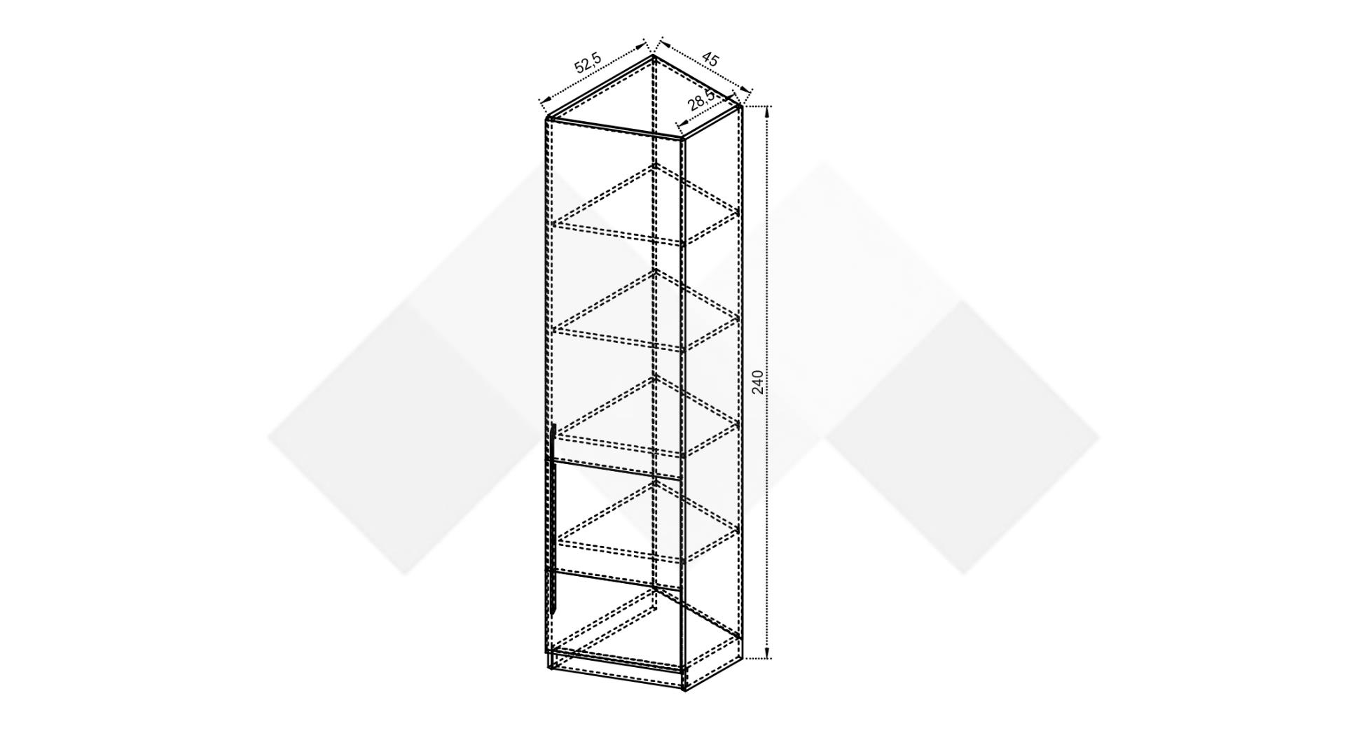 Д: 45 см Ш: 52.5-28.5 см В: 240 см