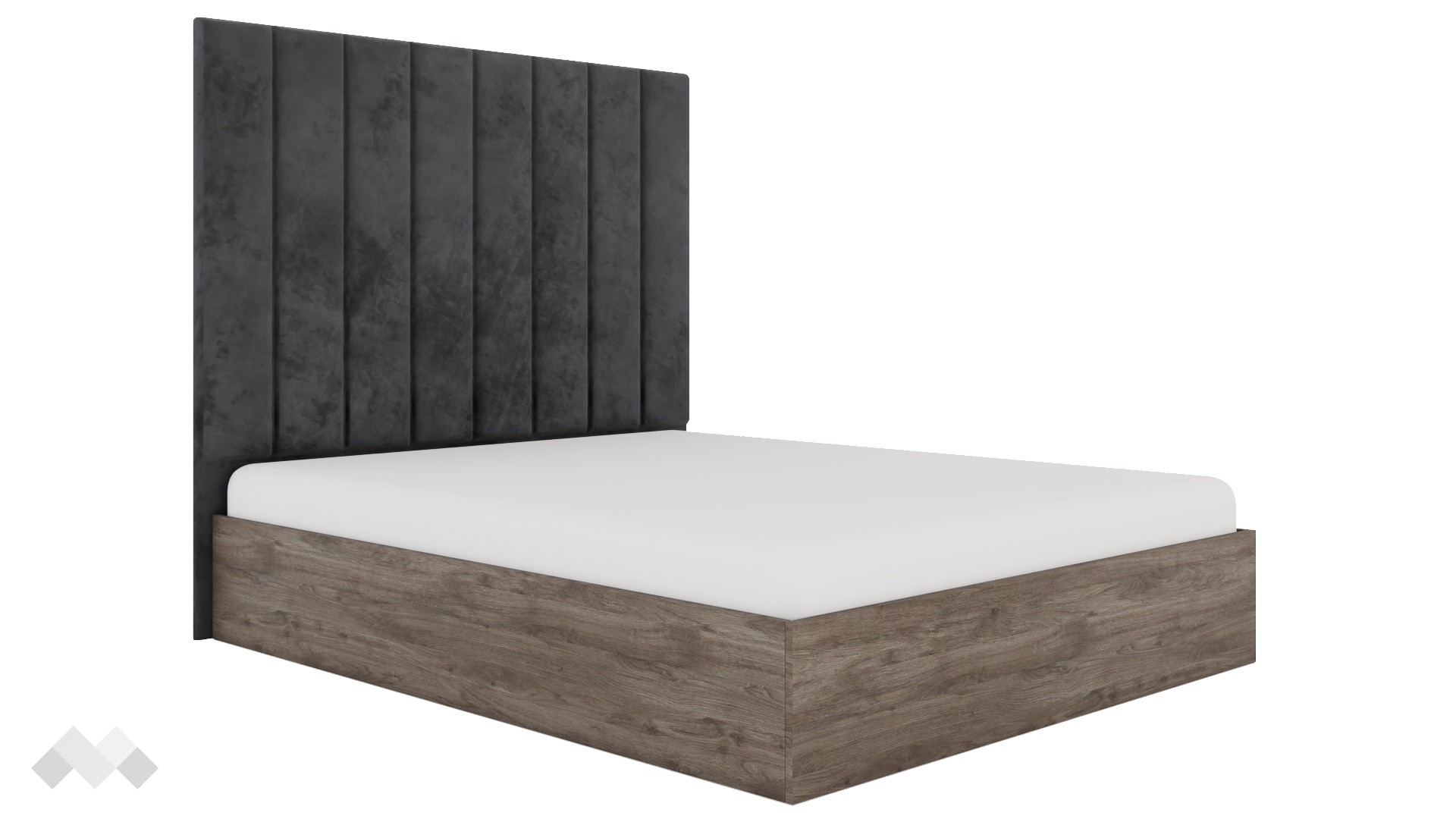 Спалнята ще ти осигури необходимото пространство за спокоен и комфортен сън. Тя е за матрак с размер 160/200 см. Високата, тапицирана табла на модела го превръща в перфектния избор за любителите на отдиха, защото ти позволява да се облегнеш комфортно и да се отдадеш на заслужена почивка по възможно най-удобния начин за теб. Таблата е с приятна и мека на допир сива дамаска. Любима книга или вечерното предаване - изборът е твой, единственото сигурно нещо е, че ще се чувстваш по-приятно от всякога.