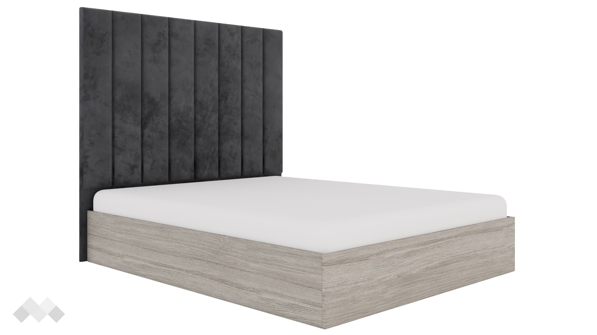 Спалнята ще ти осигури необходимото пространство за спокоен и комфортен сън. Тя е за матрак с размер 160/200 см. Високата, тапицирана табла на модела го превръща в перфектния избор за любителите на отдиха, защото ти позволява да се облегнеш комфортно и да се отдадеш на заслужена почивка по възможно най-удобния начин за теб. Таблата е с приятна и мека на допир сива дамаска. Любима книга или вечерното предаване - изборът е твой, единственото сигурно нещо е, че ще се чувстваш по-приятно от всякога.