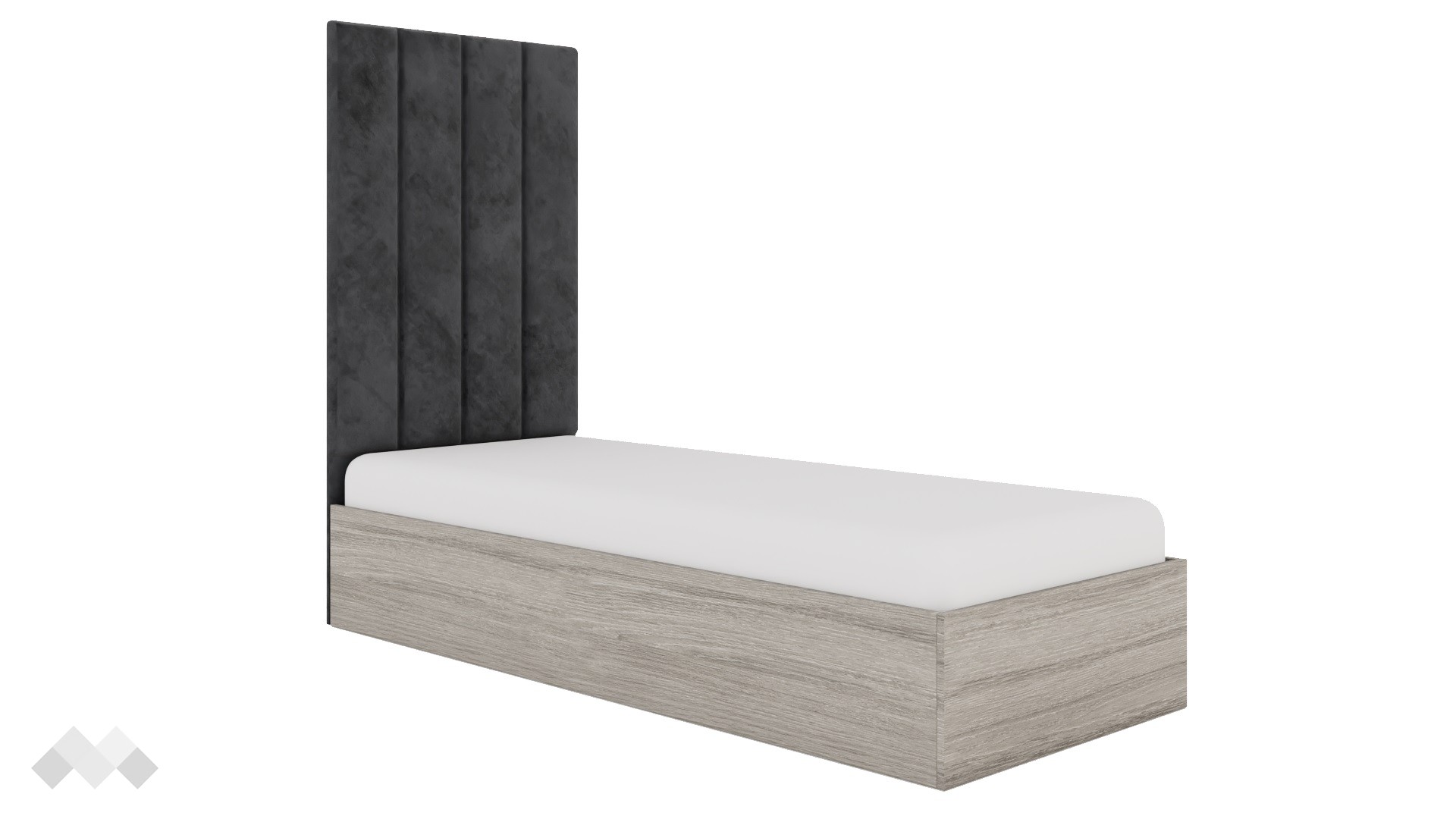 Леглото е за матрак с размер 82/190 см. Високата, тапицирана табла на модела го превръща в перфектния избор за любителите на отдиха, защото ти позволява да се облегнеш комфортно и да се отдадеш на заслужена почивка по възможно най-удобния начин за теб. Таблата е с приятна и мека на допир сива дамаска. Любима книга или вечерното предаване - изборът е твой, единственото сигурно нещо е, че ще се чувстваш по-приятно от всякога.