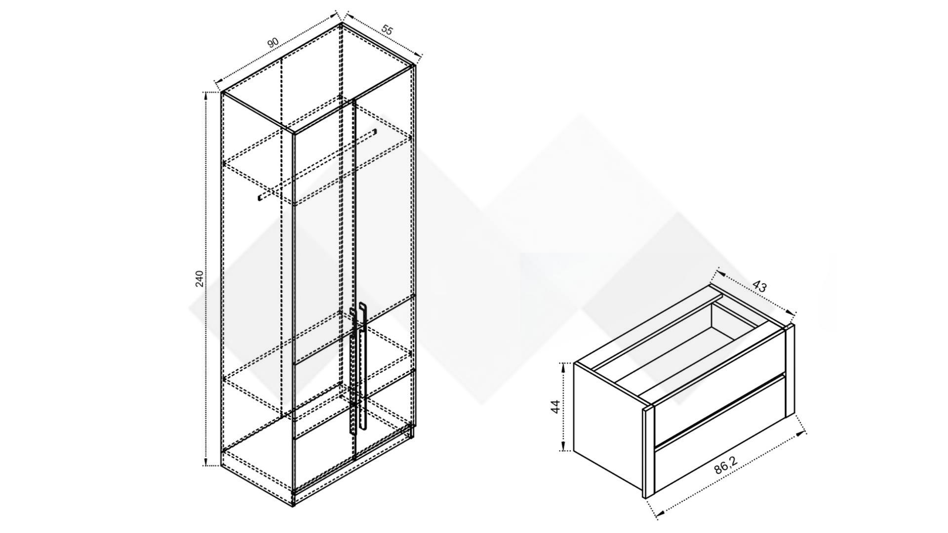 Двукрилният гардероб с две чекмеджета Комо е идеалното решение за твоята спалня, антре или като допълнителен шкаф за съхранение на твоите вещи. Той е класически гардероб с компактна форма и ще те впечатли с функционално разпределение, което ще ти позволи да подредиш добре всички дрехи и аксесоари.
