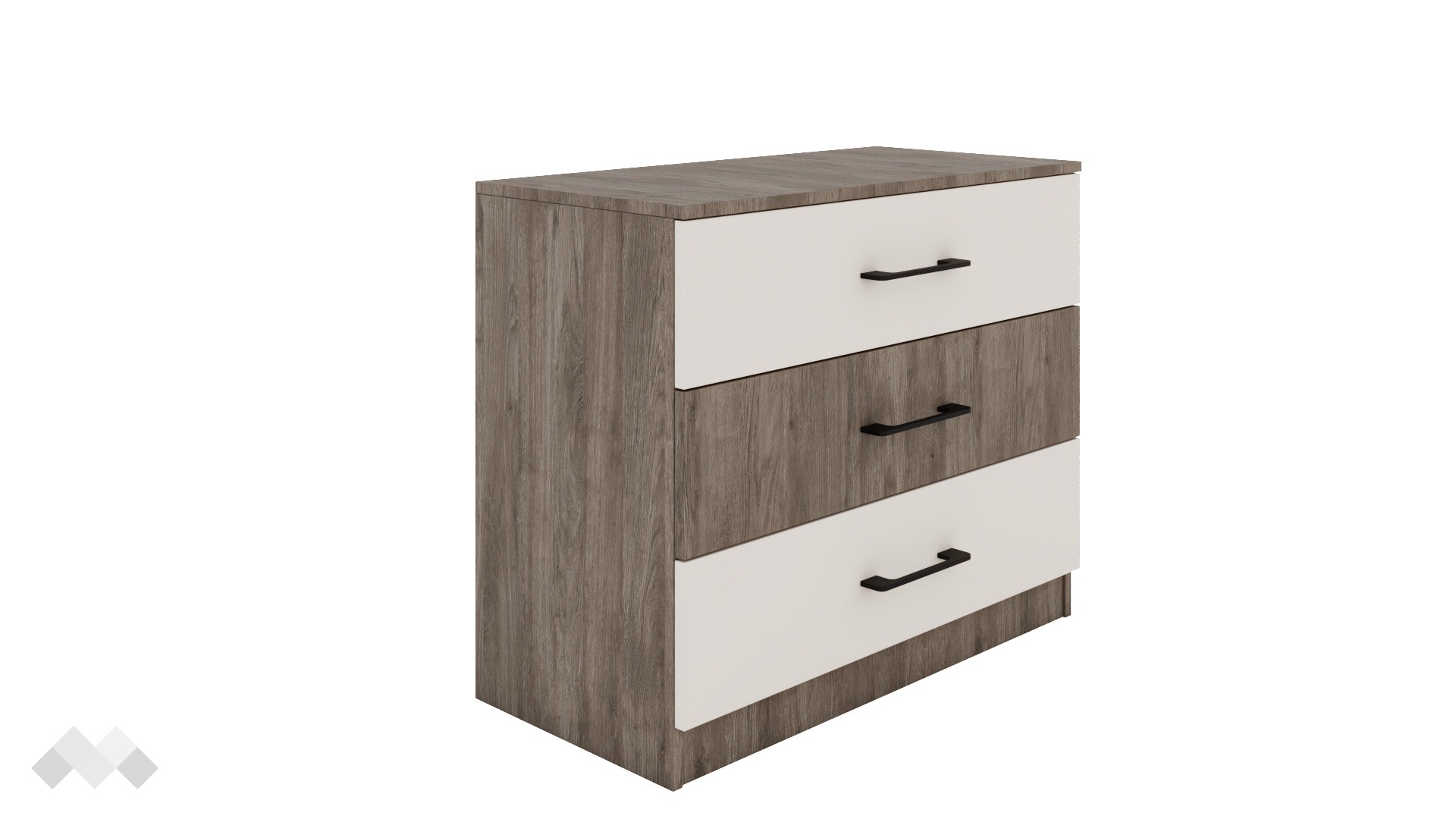 Скринът с три чекмеджета е изключително практичен за съхранение на дрехи, спално бельо и лични вещи. Чекмеджетата са снабдени с телескопични водачи, което прави изтеглянето им леко и стабилно, като издържат и при по-голямо натоварване.