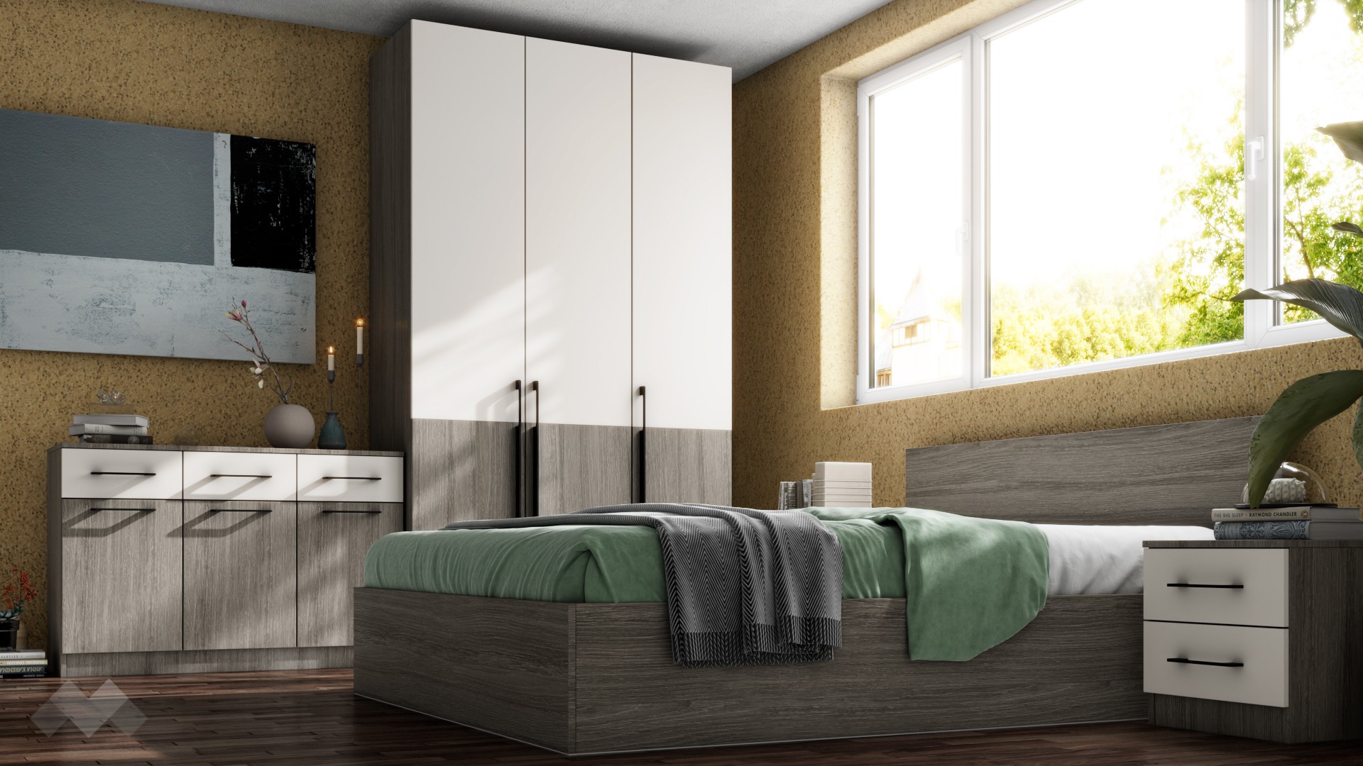 ⭐ Предимства: ✓ 18 мм ПДЧ ✓ спалня за матрак 160/200 ✓повдигащ механизъм ✓ гардеробна система ✓ механизъм за плавно затваряне ✓ скрин с 3 чекмеджета и 3 врати ✓ две нощни шкафчета ✓ модерен и функционален дизайн