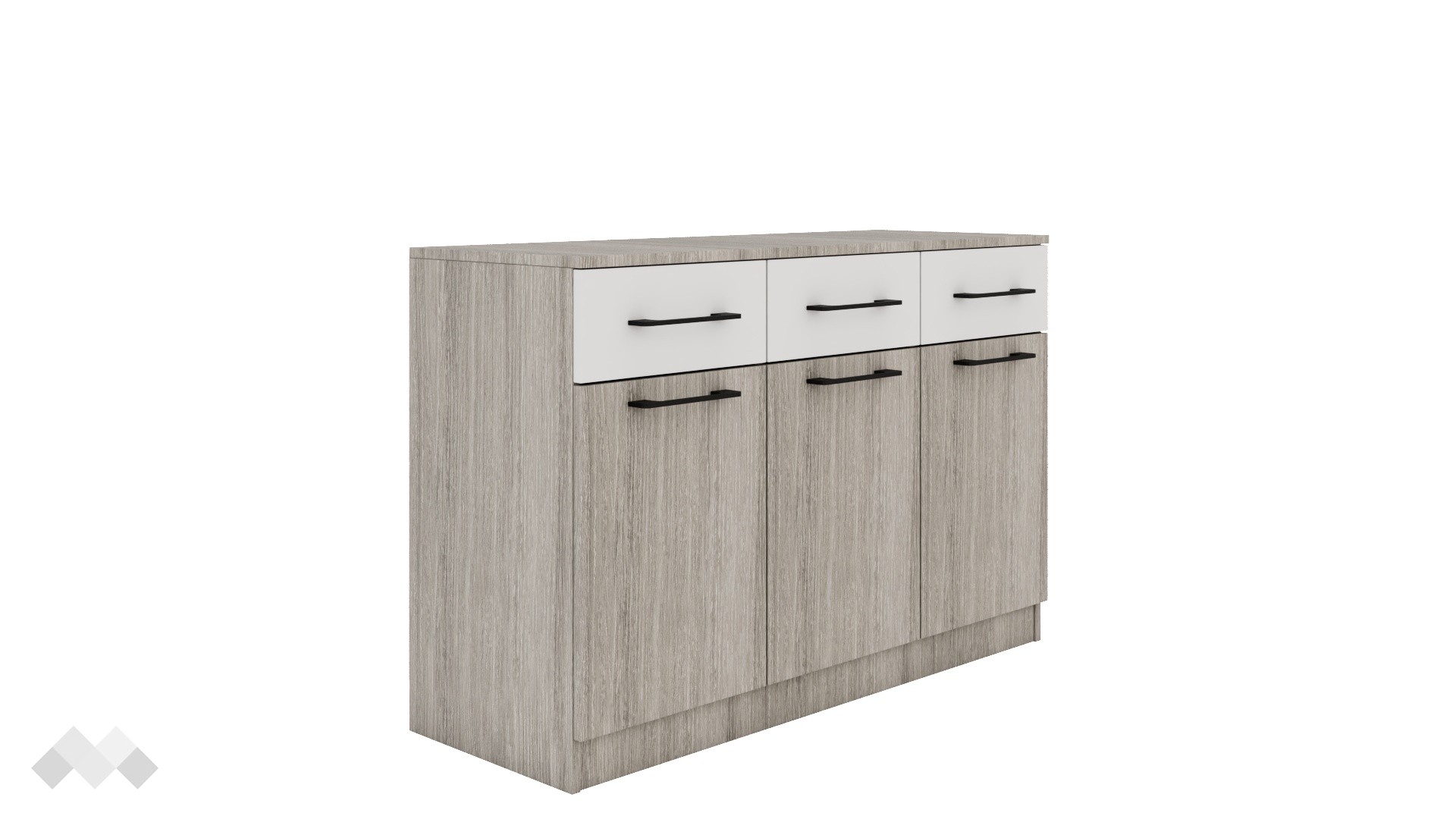 Скринът разполага с три просторни чекмеджета, които предлагат достатъчно място за съхранение на бельо, аксесоари или други лични вещи. Чекмеджетата са снабдени с телескопични водачи, което прави изтеглянето им леко и стабилно, като издържат и при по-голямо натоварване. Зад всяка от трите врати на скрина има удобен вътрешен рафт, което ще ти осигури оптимално използване на пространството.