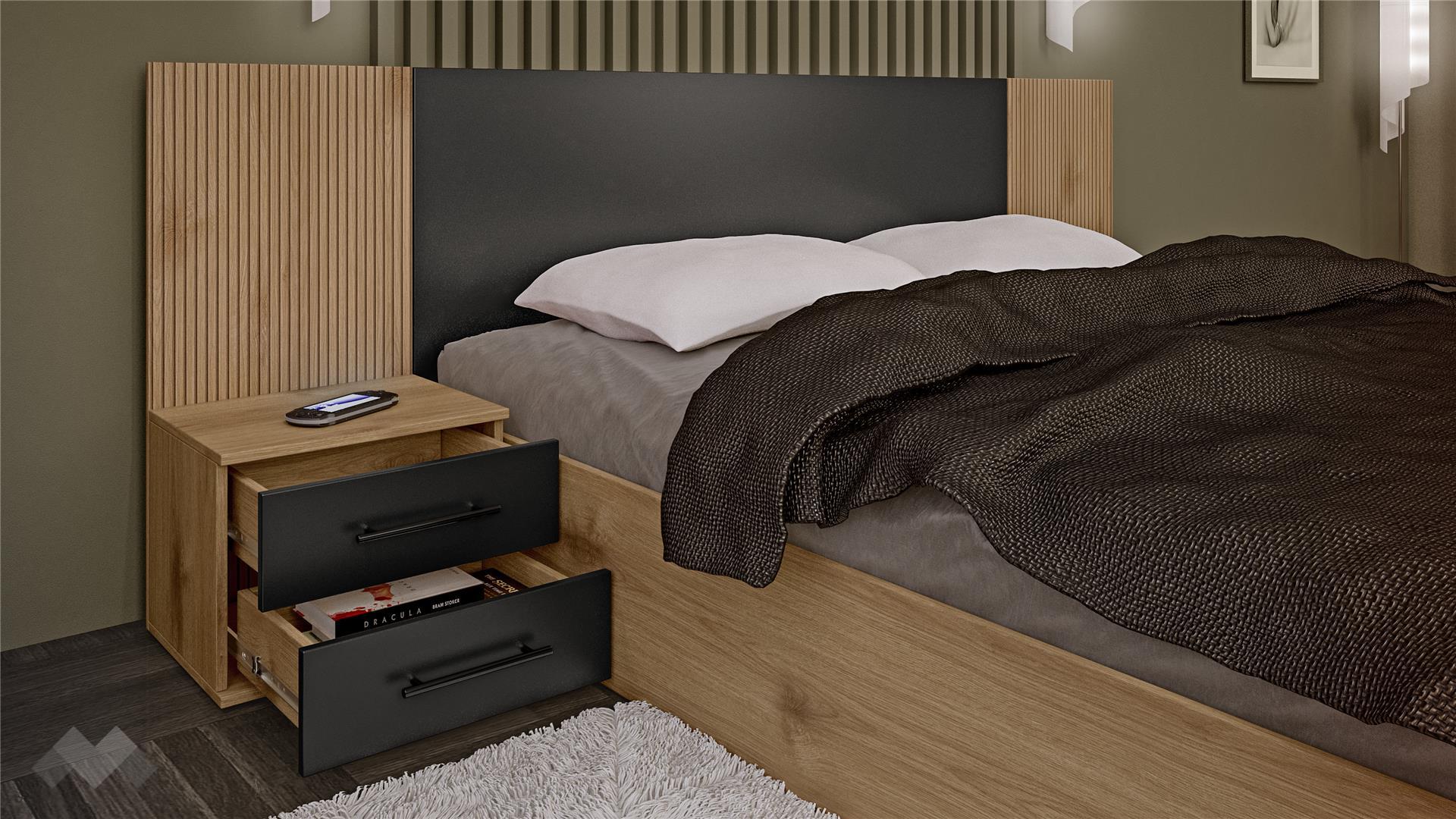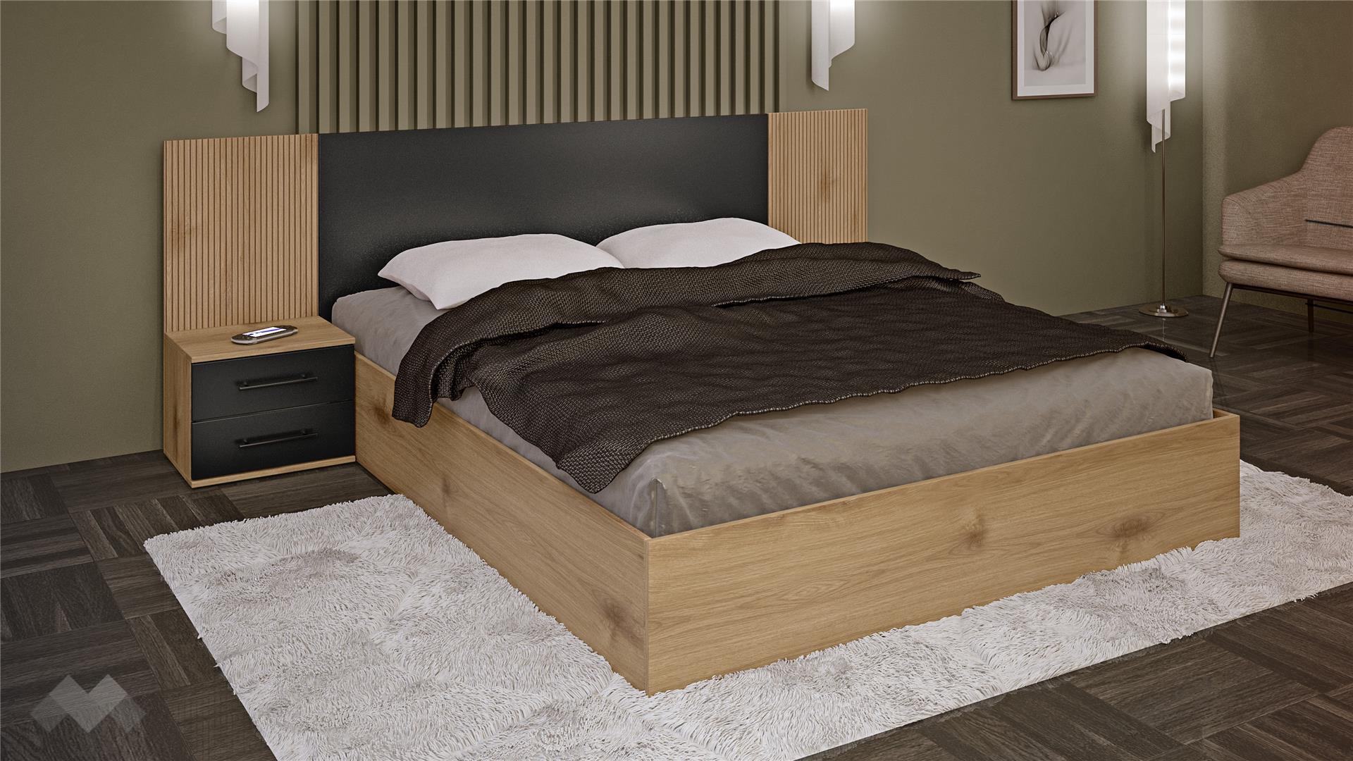 Спалня с нощни шкафчета 160/200Ламеладъб канела с дъб ламела и черно шагре