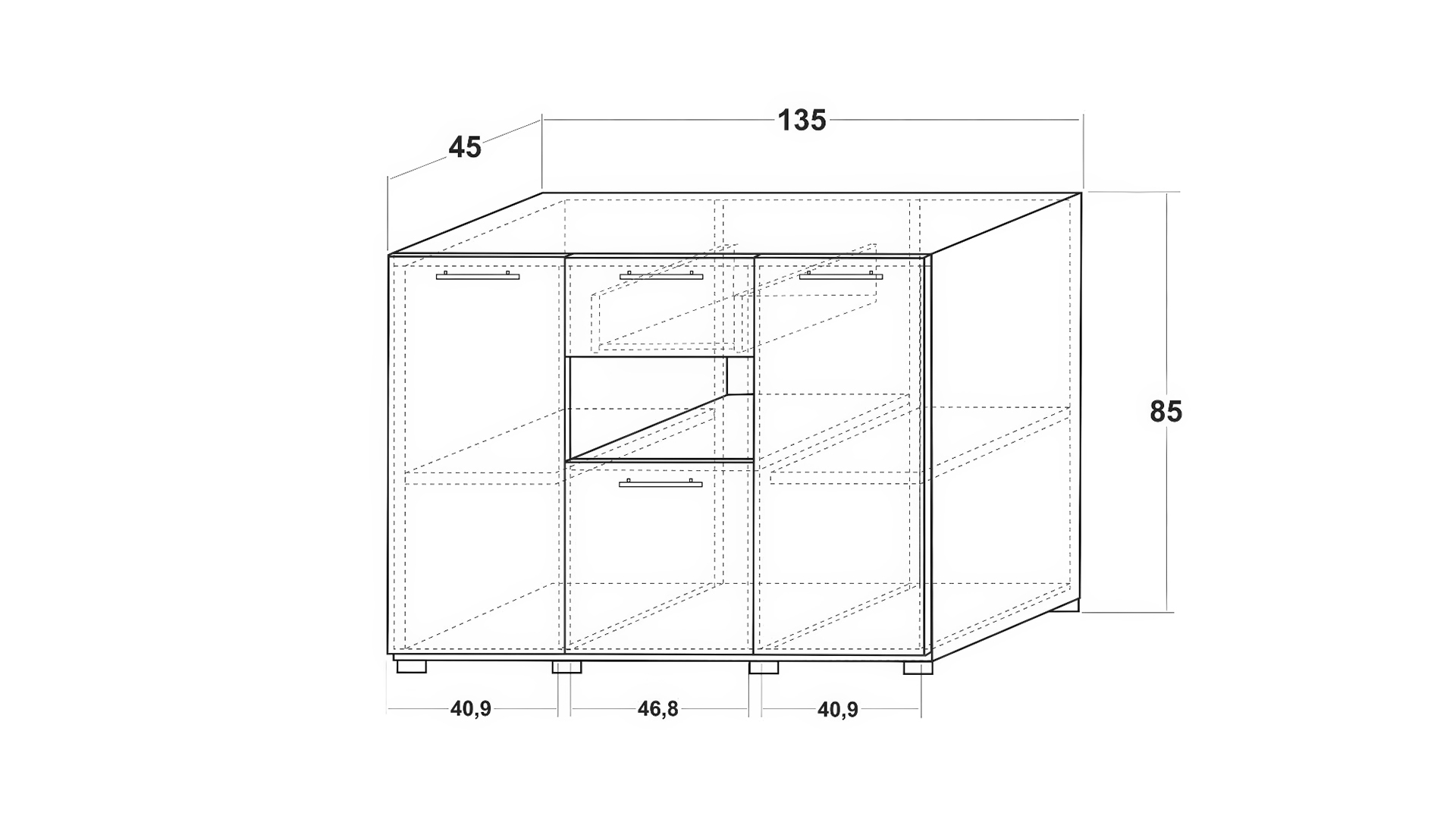 Д: 135 см Ш: 45 см В: 85 см