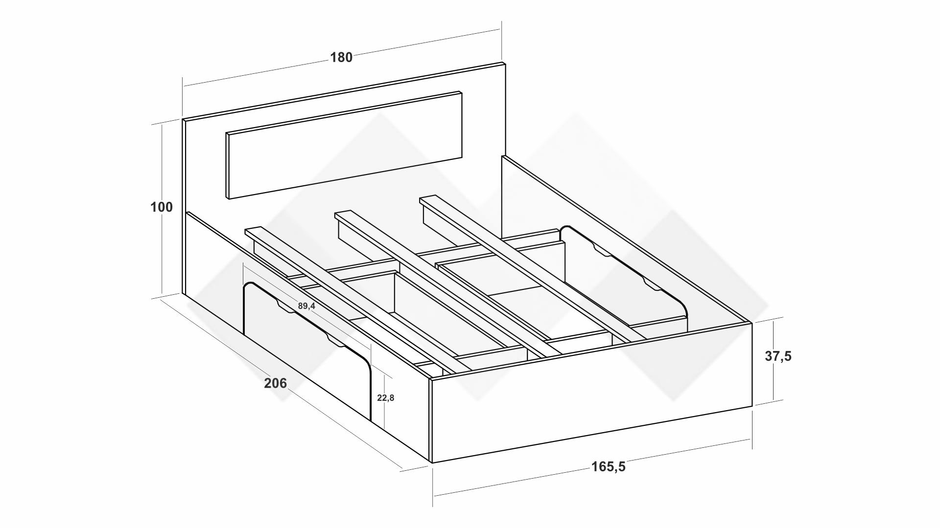 Спалня Латте комбинира в себе си удобство и практичност. Подходяща за матрак с размер 160/200, тя ти предоставя доста място за спокоен сън. С високата си табла ти предоставя удобство и комфорт за отпускане преди сън с интересно четиво или пък с любим филм. А двете чекмеджета ти предоставят удобно място за съхранение на дрехи, завивки или други вещи.