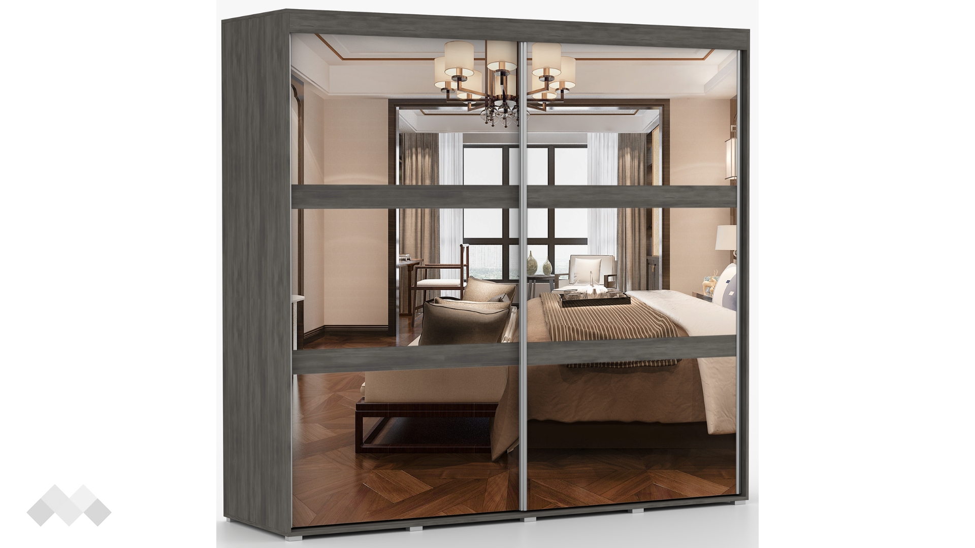 ⭐ Предимства: ✓ спалня с 2 чекмеджета ✓ гардероб с плъзгащи врати ✓ огледала ✓ 10 рафта ✓ 2 лостa за закачалки ✓ 2 бр. нощен шкаф с 2 чекмеджета ✓ скрин с 3 чекмеджета ✓ модерен декор ✓ практично разпределение ✓ качествена изработка ✓ 16 мм ПДЧ