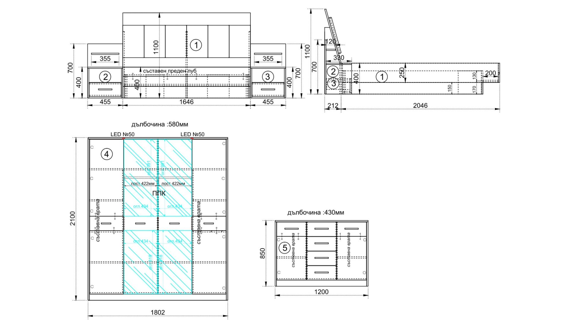 Спалният комплект е с включен механизъм за повдигане на матрака.