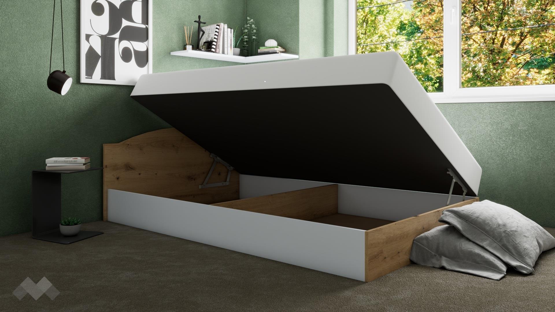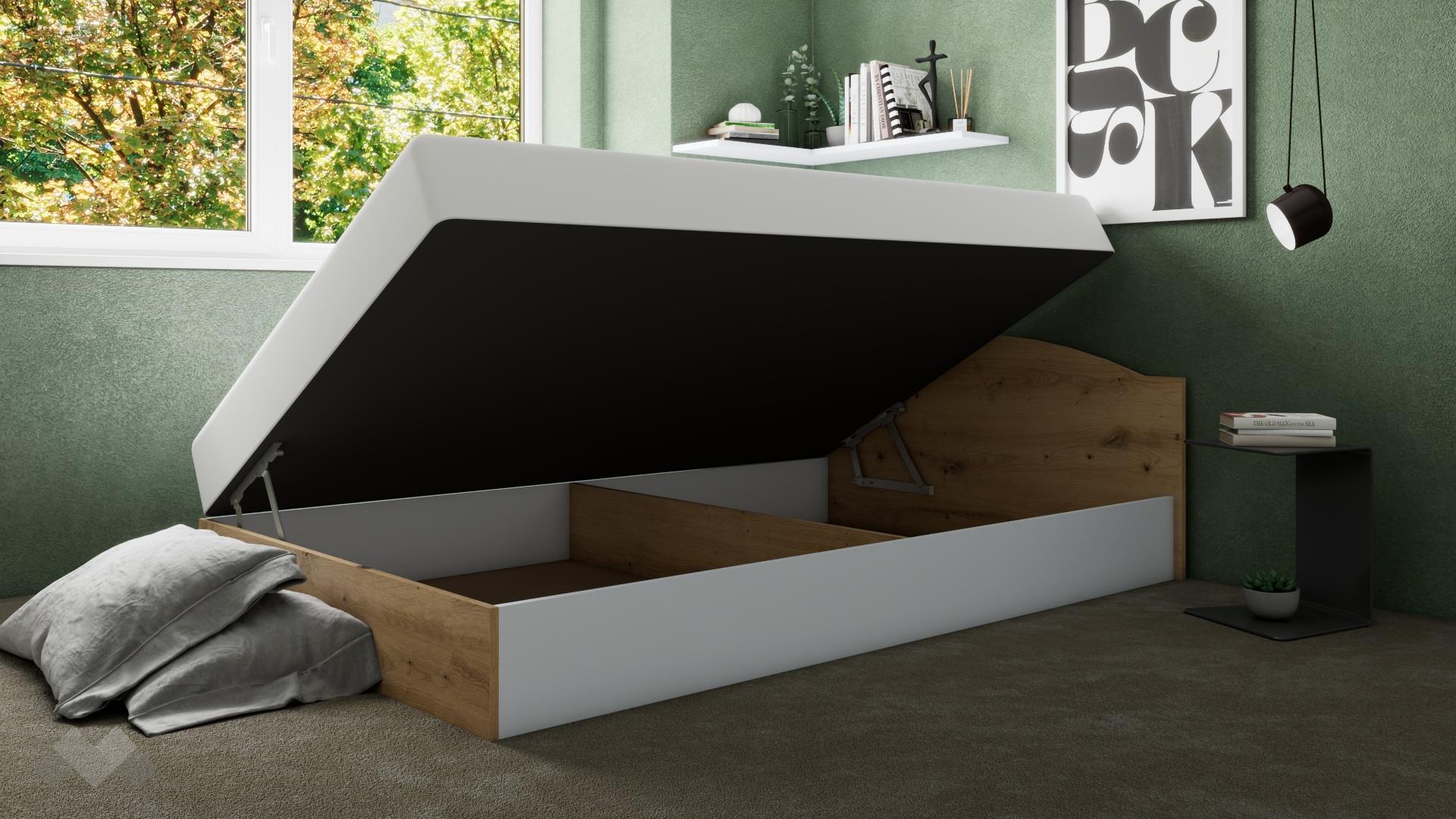 Благодарение на включеният в комплекта повдигащ пружинен механизъм, под матрака се открива широко пространство, готово да побере всички възглавници и завивки, на които все не се намира място, а допълнителният делител на подматрачното пространство прави организацията на съхраняваните вещи още по-лесна.