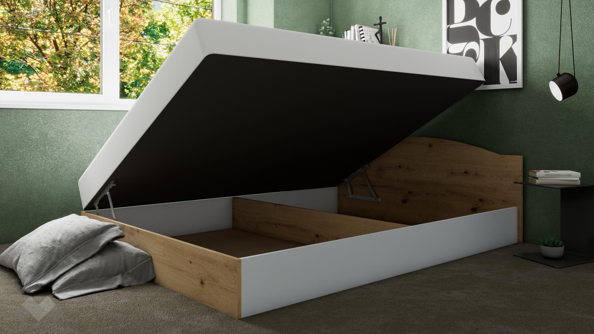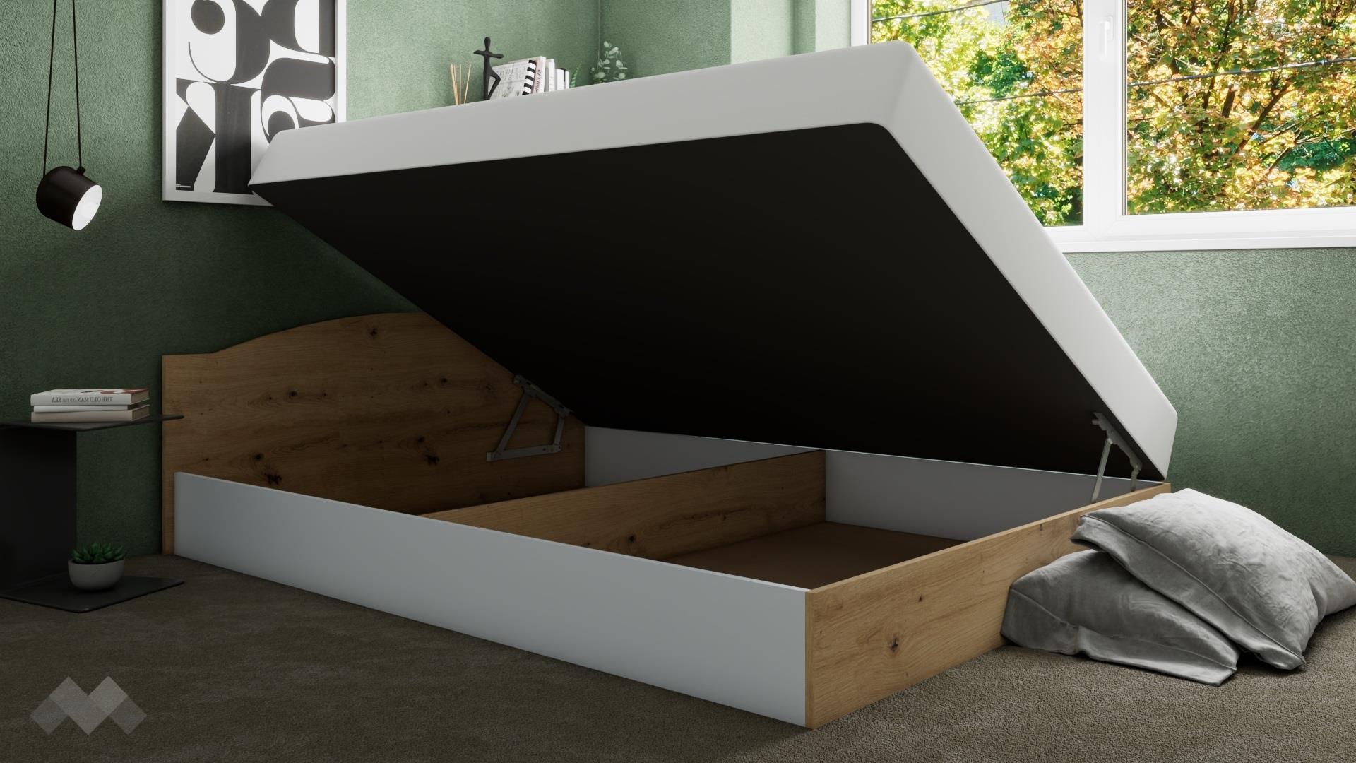 Благодарение на включеният в комплекта повдигащ пружинен механизъм, под матрака се открива широко пространство, готово да побере всички възглавници и завивки, на които все не се намира място, а допълнителният делител на подматрачното пространство прави организацията на съхраняваните вещи още по-лесна.