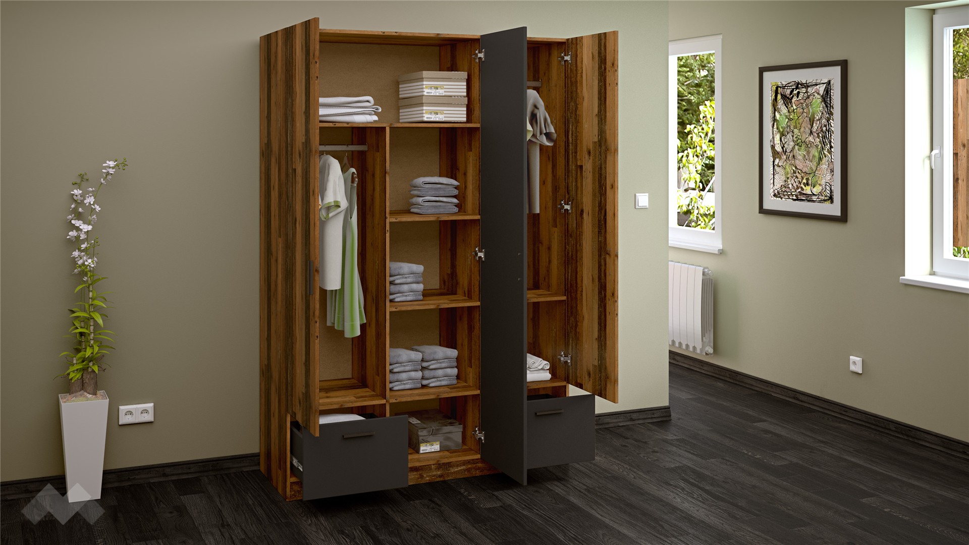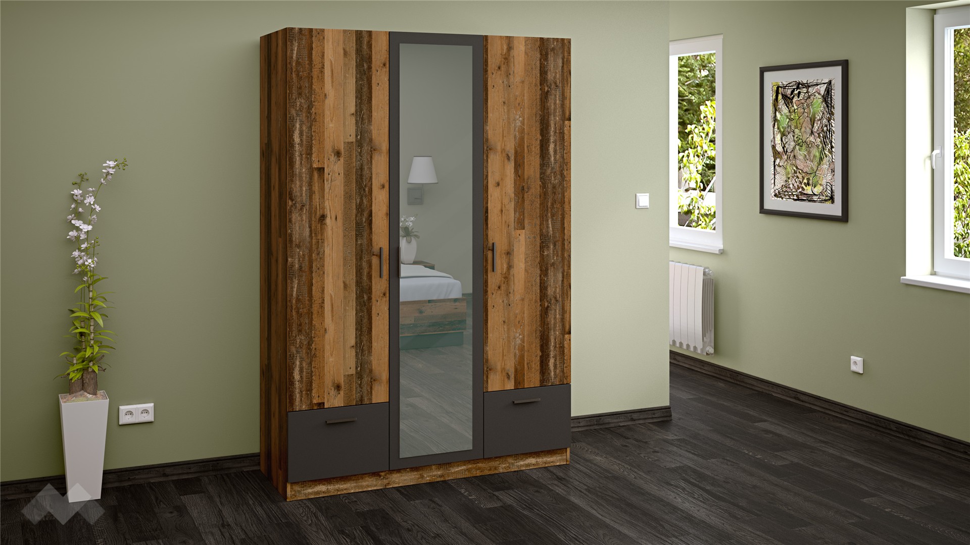 Гардероб Лориен съчетава всички тези аспекти на модерен и семпъл дизайн, качество и комфорт. Разпределението на гардероба е отлично – предлага ти общо 7 рафта за дрехите, които съхраняваш сгънати, 2 лоста за закачалки и две чекмеджета, подходящи за бельо или аксесоари. На огледалото ще можеш да се погрижиш за перфектния си външен вид.
