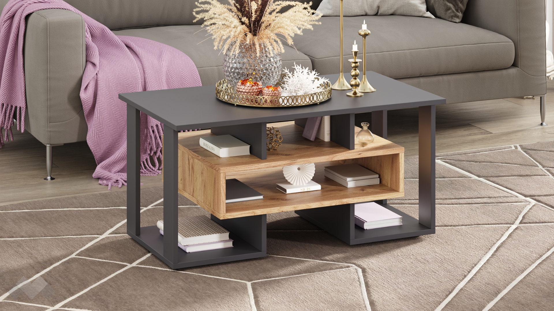 Масата разполага с отворен рафт в средата, който предлага удобство за съхранение на дистанционни управления, списания или други малки предмети, които винаги искате да имате под ръка. Това я прави изключително практична и лесна за подреждане.