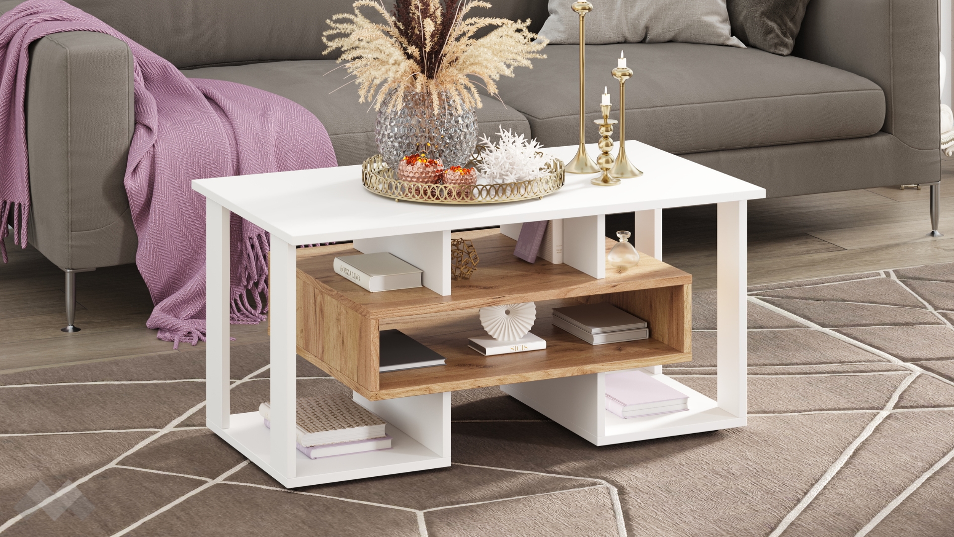 Масата разполага с отворен рафт в средата, който предлага удобство за съхранение на дистанционни управления, списания или други малки предмети, които винаги искате да имате под ръка. Това я прави изключително практична и лесна за подреждане.