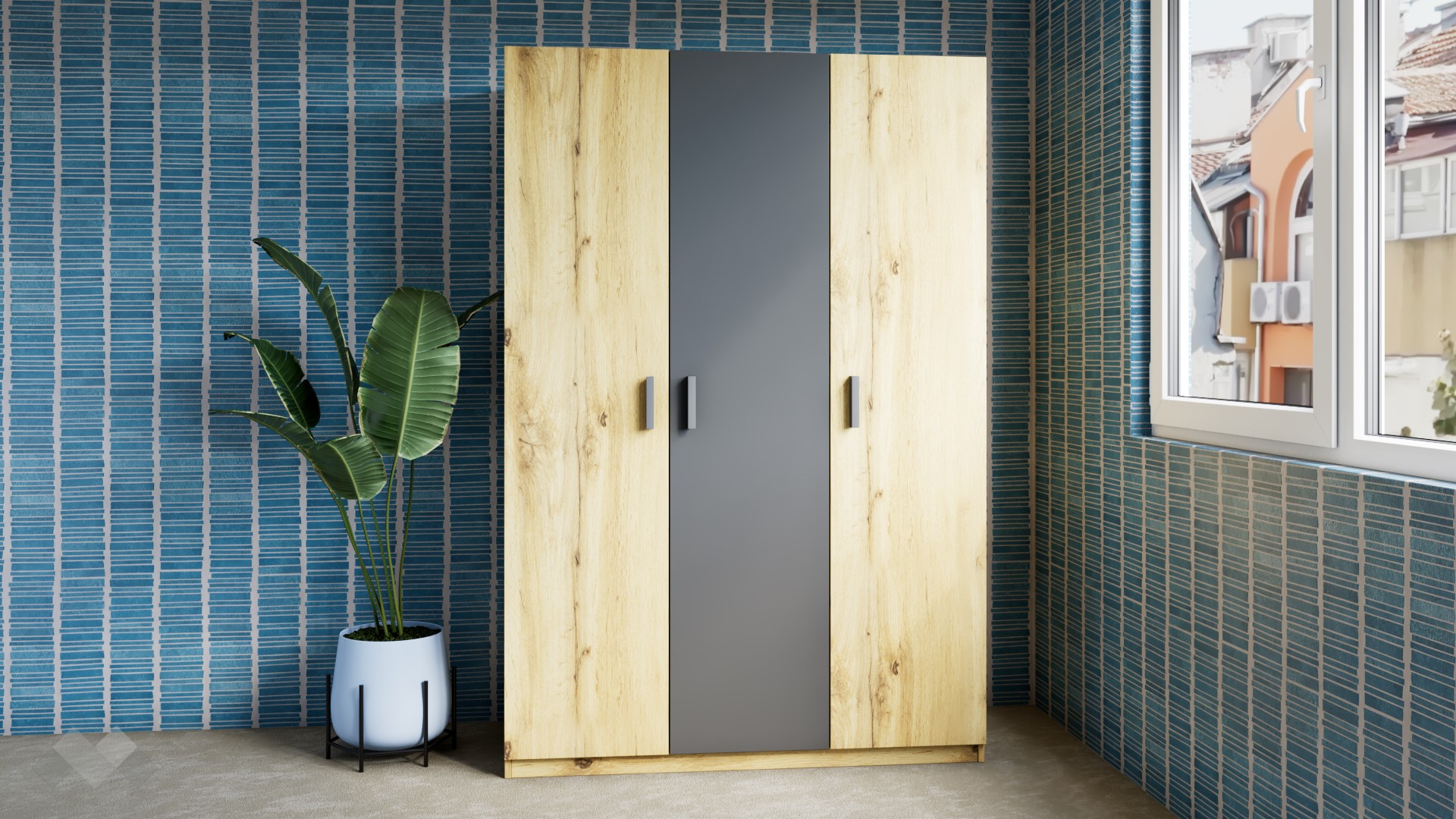 ГардеробМаленасветъл вотан с антрацит трикрилни