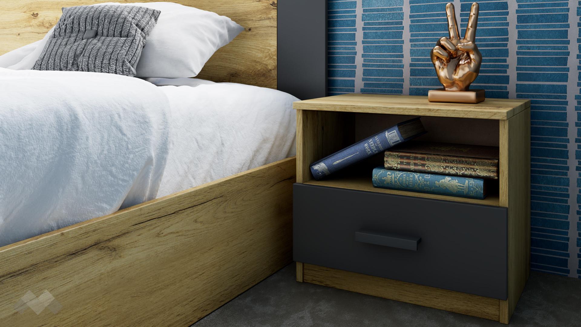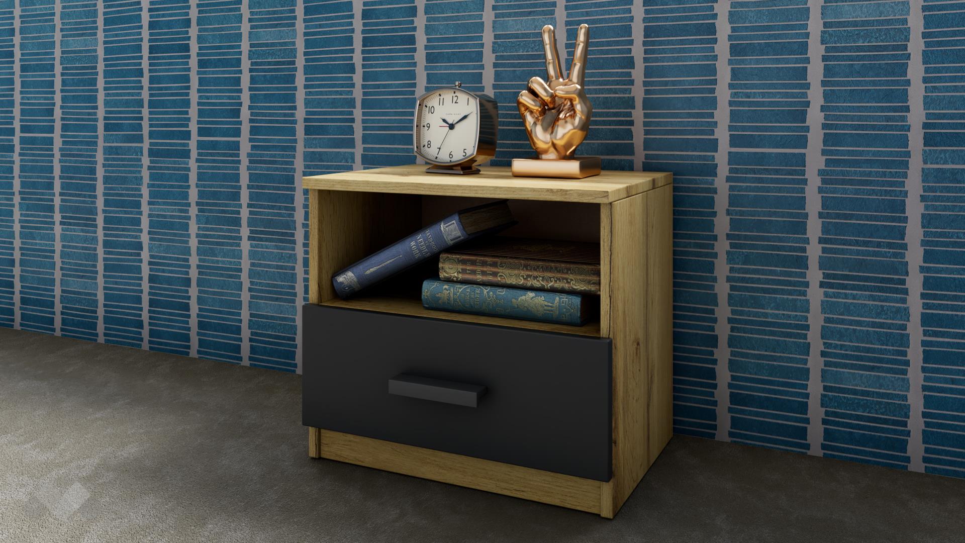 Нощните шкафчета са изключително практични. Благодарение на оптималната имвисочина, те ще паснат на всяко легло. Чекмеджето и отвореният рафт ти предоставят достатъчно място за съхранение на всички най-необходими вещи, за да са винаги на една ръка разстояние. Върху горния плот можеш да поставиш нощна лампа или книгата, която четеш преди сън.