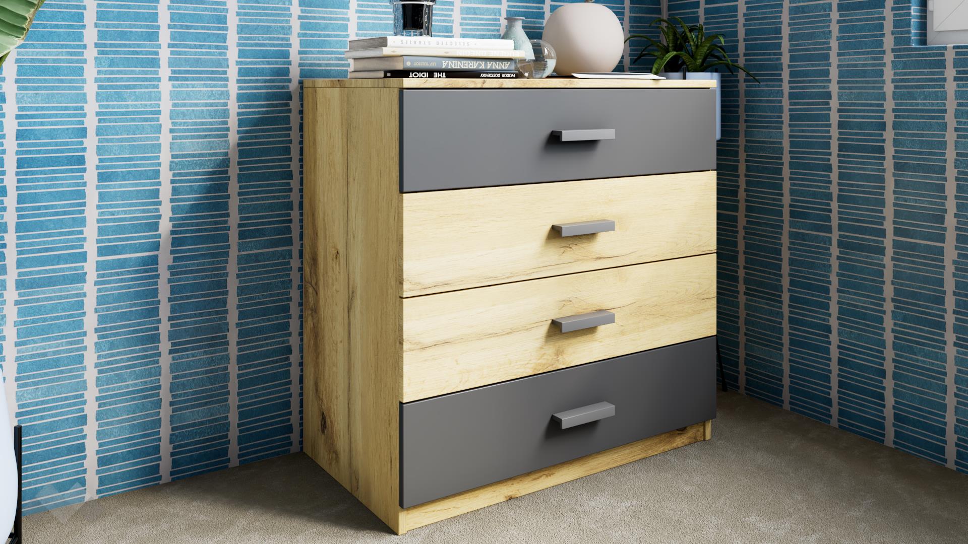 Спален комплект Малена е изработен от качествен 16 мм ПДЧ материал с висока здравина, гарантираща дълга експлоатация, а меламиновото покритие е лесно за поддръжка. Дръжките са удобни за хващане и добавят елегантен завършек.