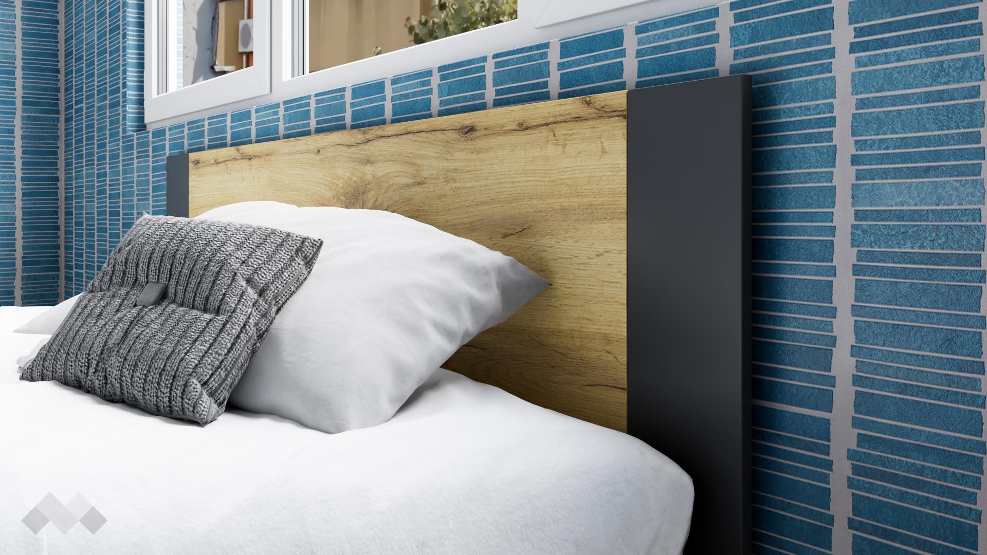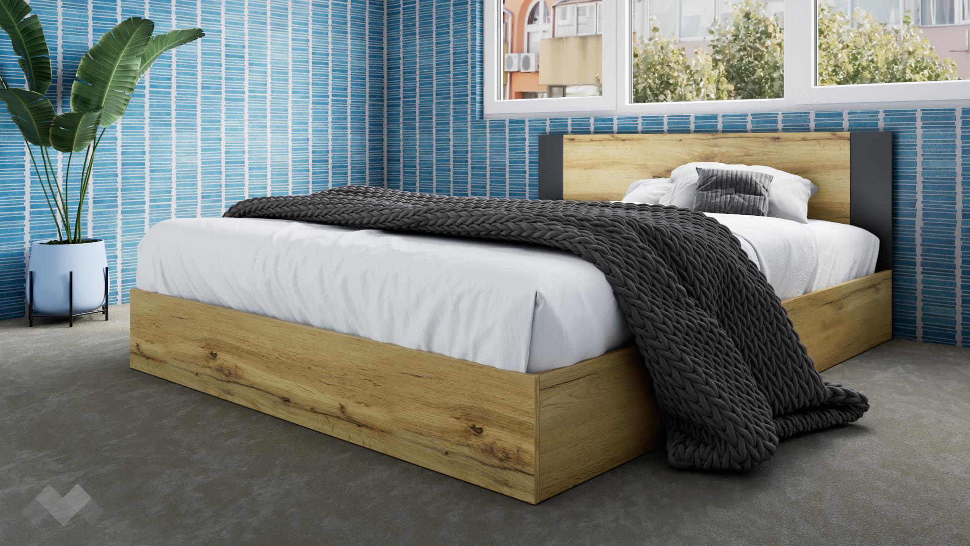 Спалнята е подходяща за матрак с размери 160/200 см., което я прави достатъчно широка за семейна спалня и в същото време не заема излишно пространство. Таблата е достатъчно висока и удобна за облягане при четене на книга или гледане на телевизия.