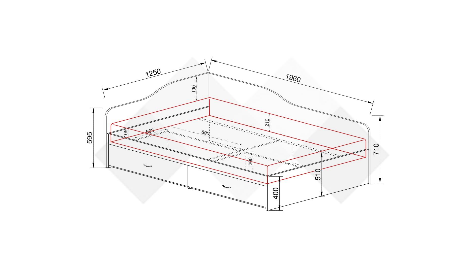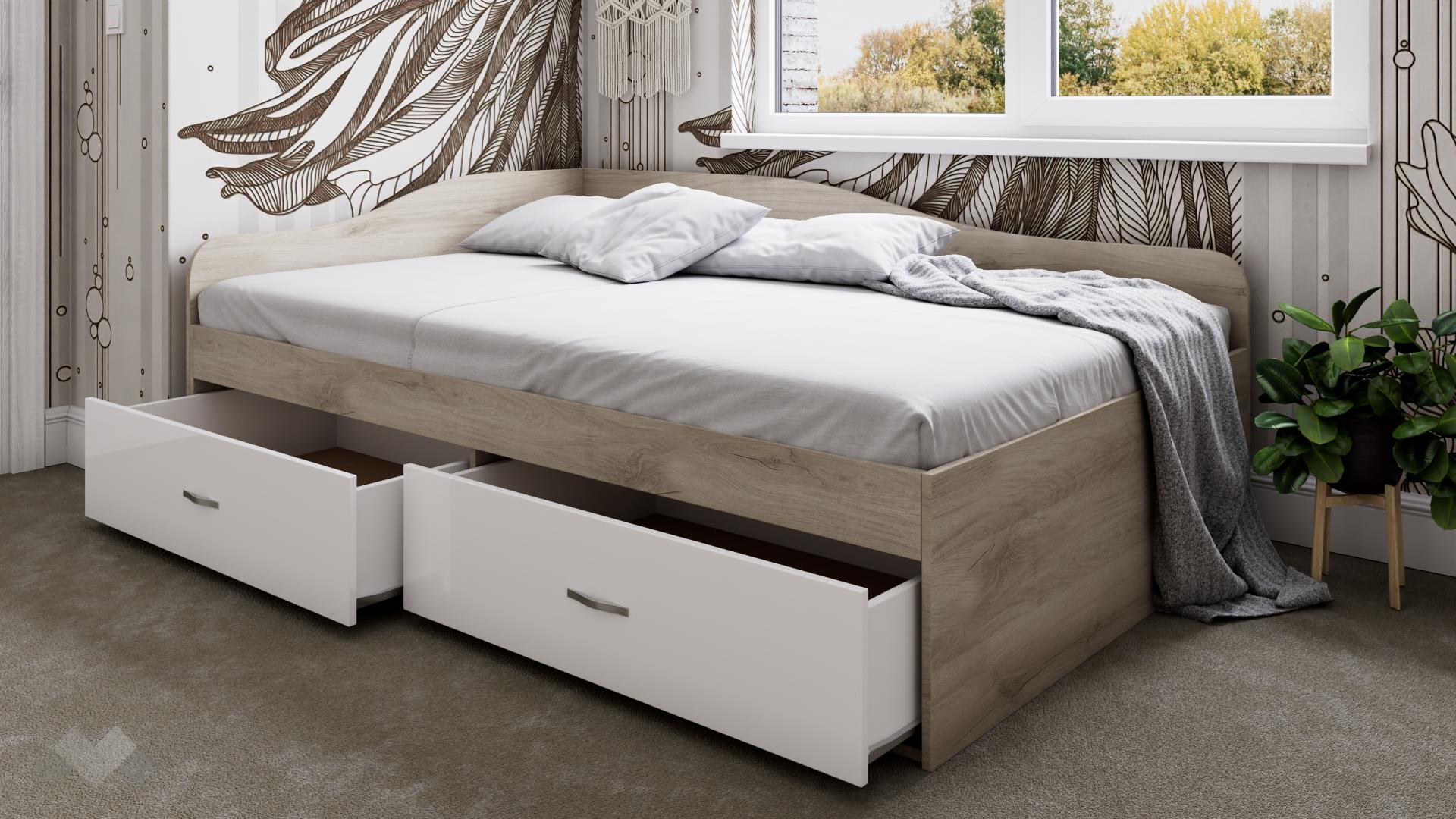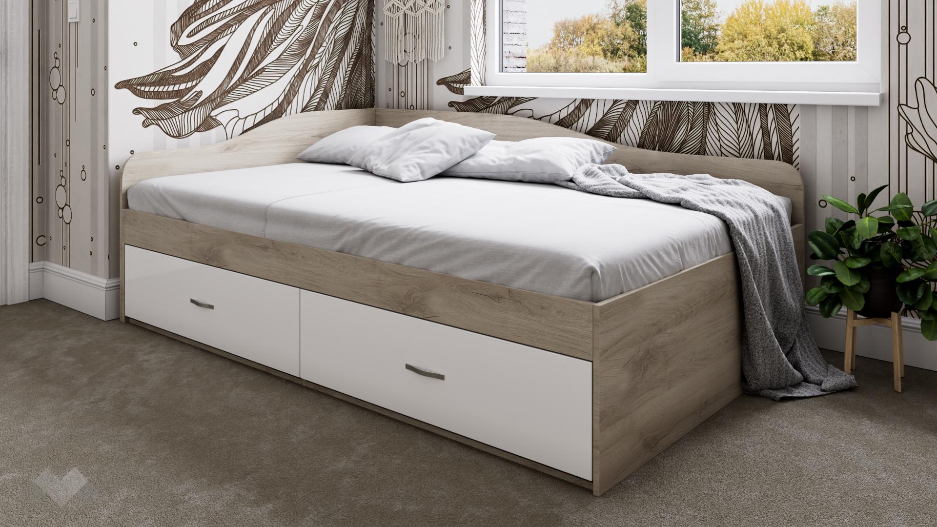 Легло с чекмеджета Марс е достатъчно просторно, за да ти предостави необходимия комфорт за сън. Подходящо е за матрак с размер 120/190 см. Благодарение на двете чекмеджета в долната част имаш допълнително място за съхранение за спално бельо, дрехи, завивки, възглавници или други необходими за теб вещи. Добавените табли осигуряват пълна изолация от заобикалящите го стени, така че когато си легнеш ще усещаш единствено комфорта на матрака и мекотата на завивките.