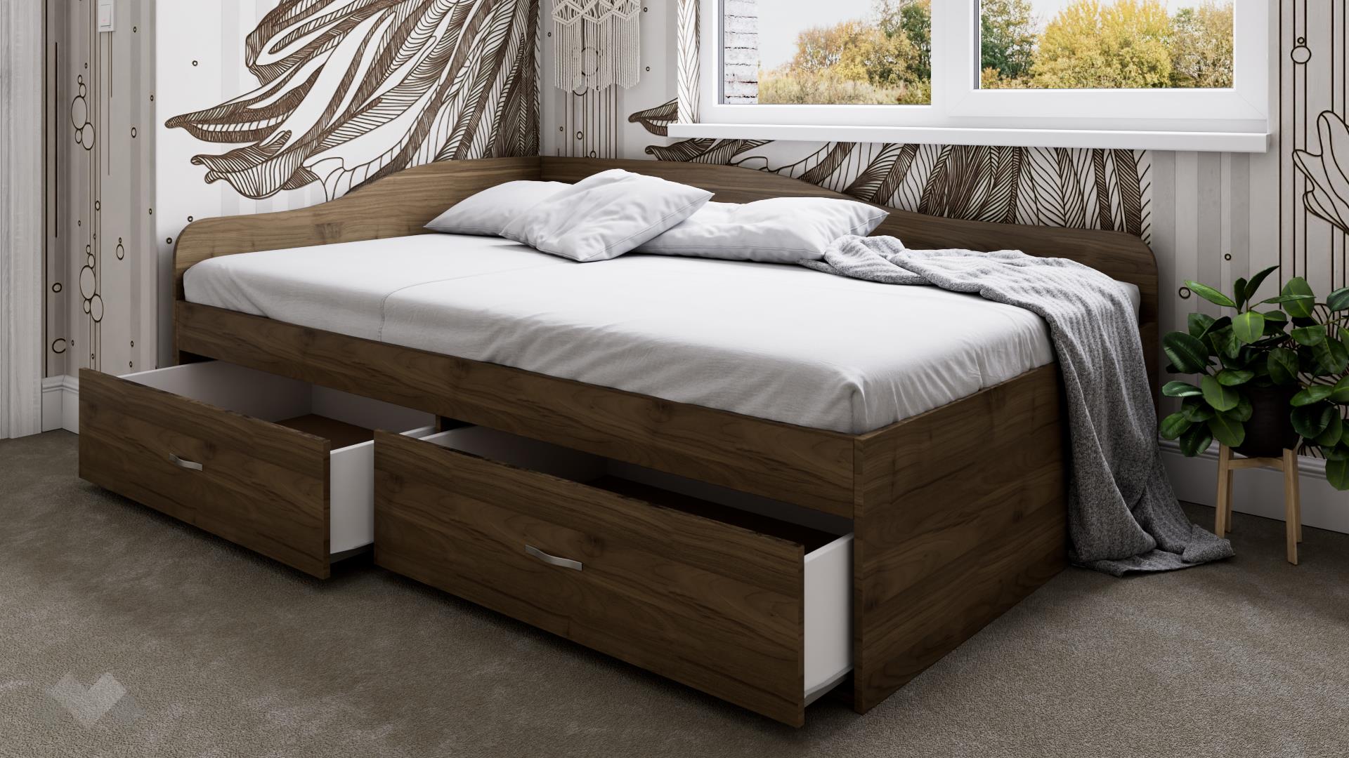 Легло с чекмеджета Марс е достатъчно просторно, за да ти предостави необходимия комфорт за сън. Подходящо е за матрак с размер 120/190 см. Благодарение на двете чекмеджета в долната част имаш допълнително място за съхранение за спално бельо, дрехи, завивки, възглавници или други необходими за теб вещи. Добавените табли осигуряват пълна изолация от заобикалящите го стени, така че когато си легнеш ще усещаш единствено комфорта на матрака и мекотата на завивките.